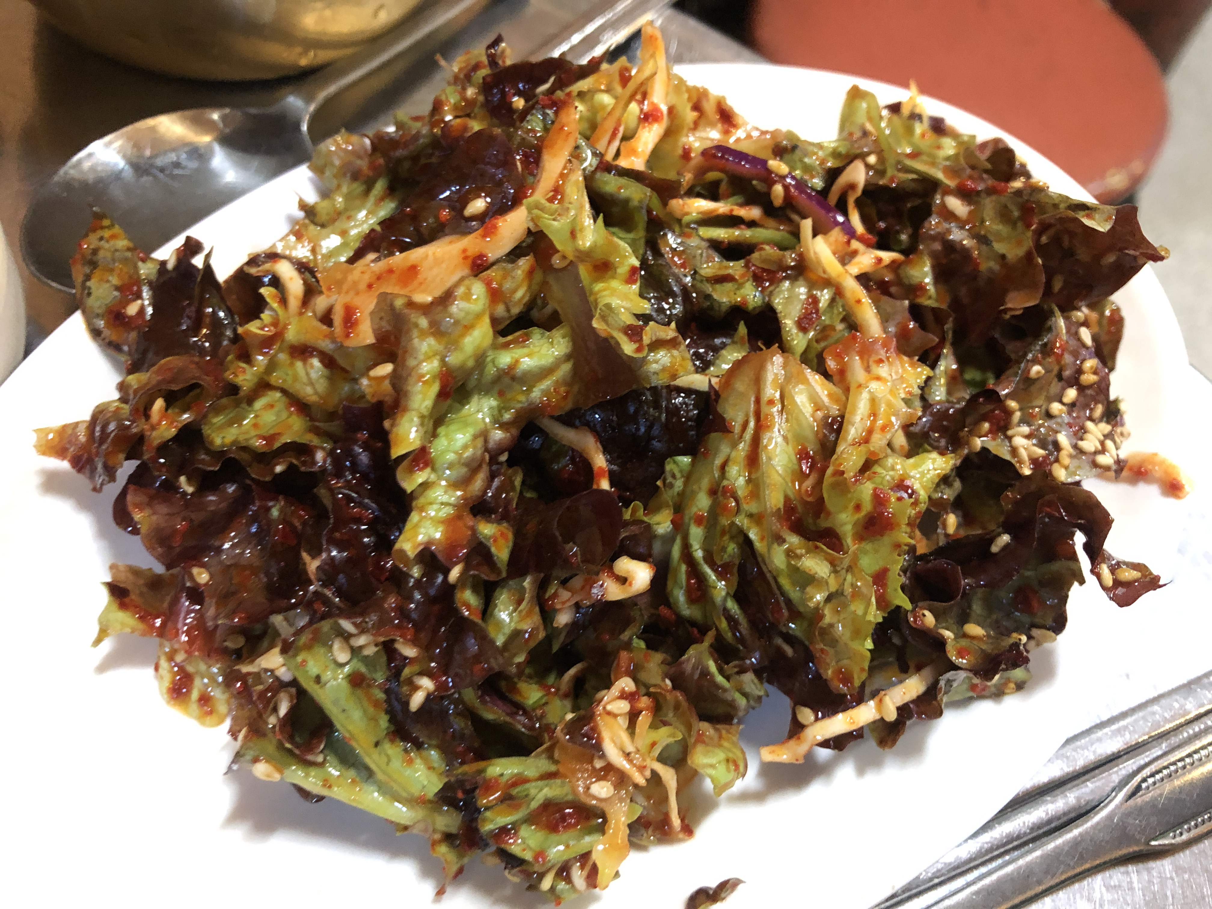 고춧가루 베이스의 상추겉절이가 등장합니다.