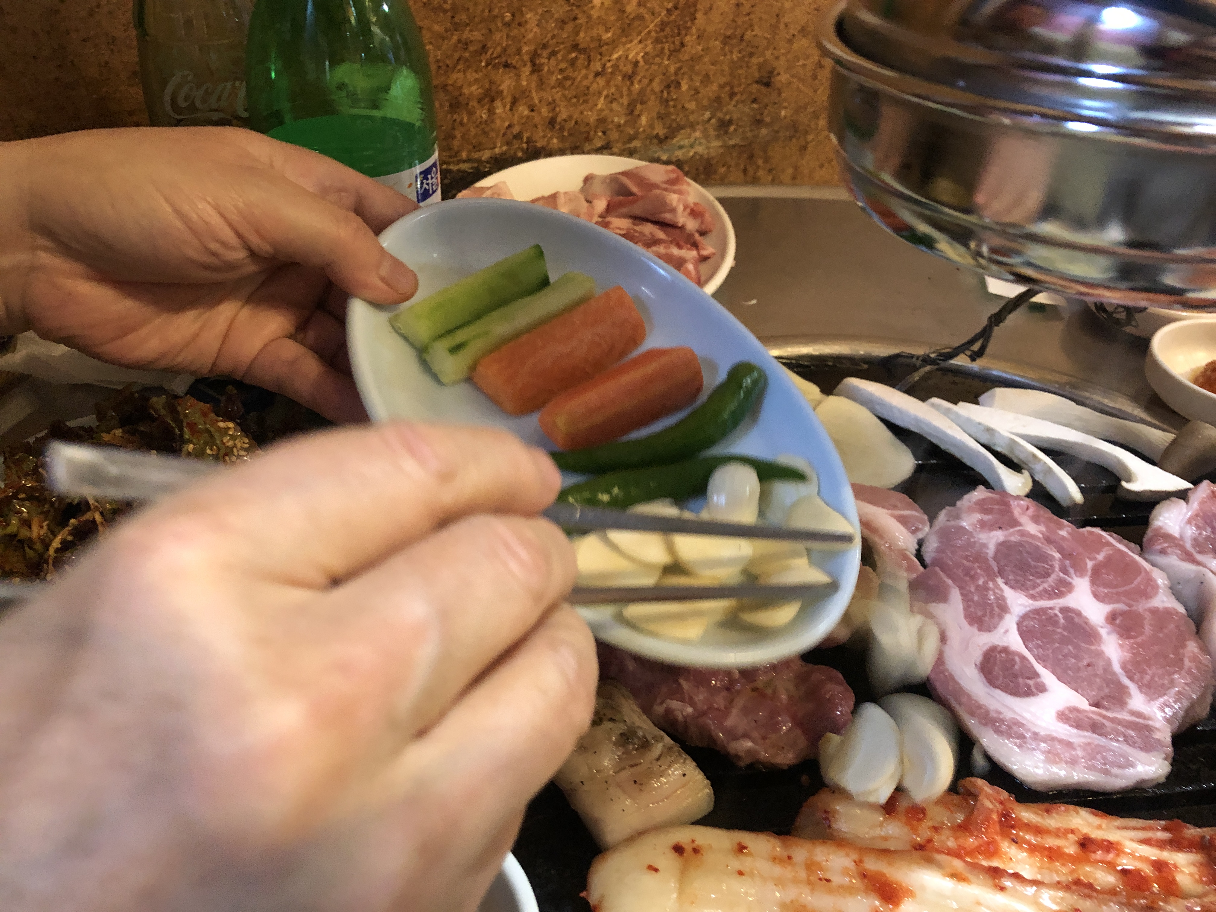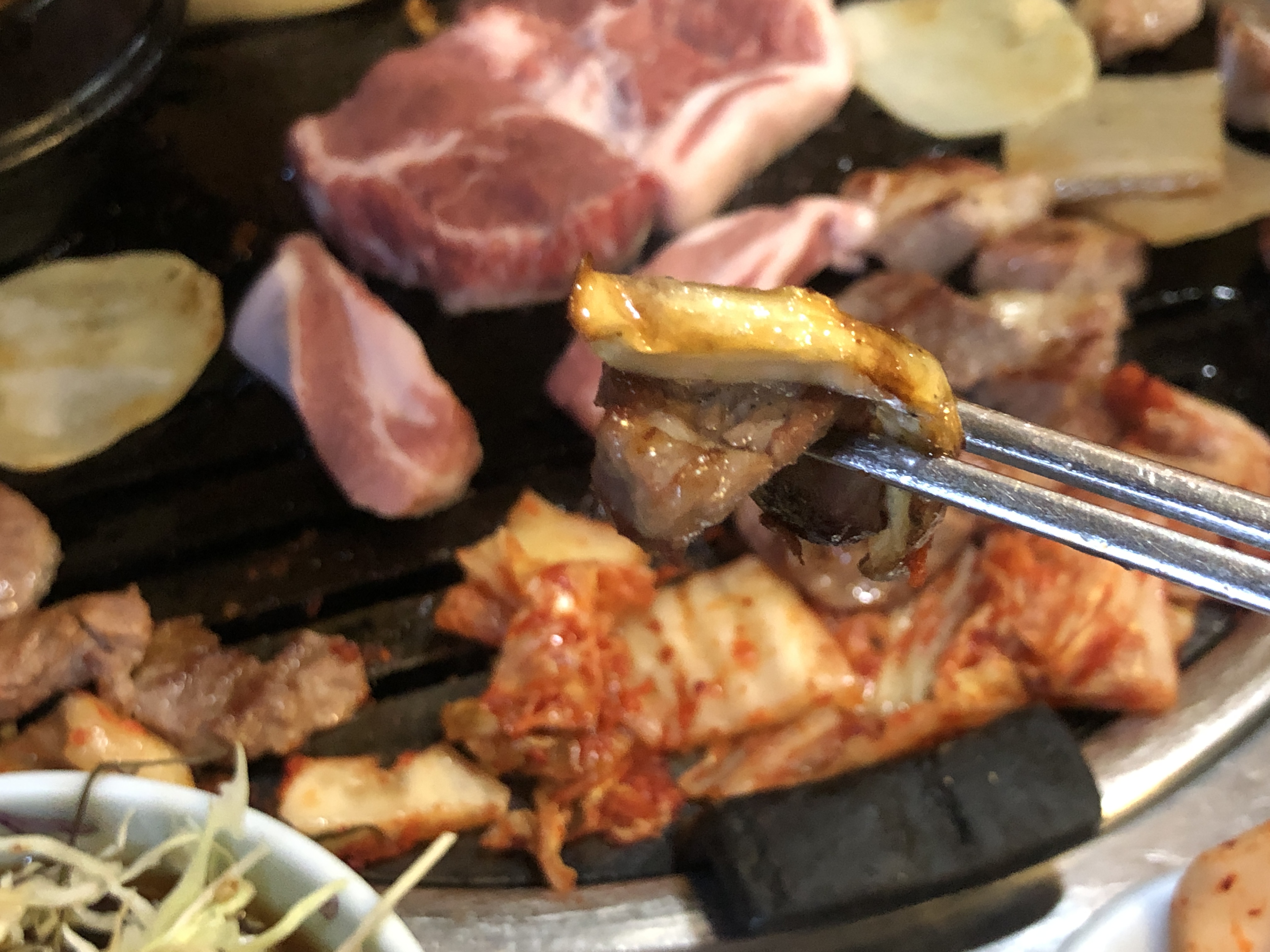 잘 구워진 고기와 야채들을 함께 곁들여 먹으니 더욱 맛있네요~