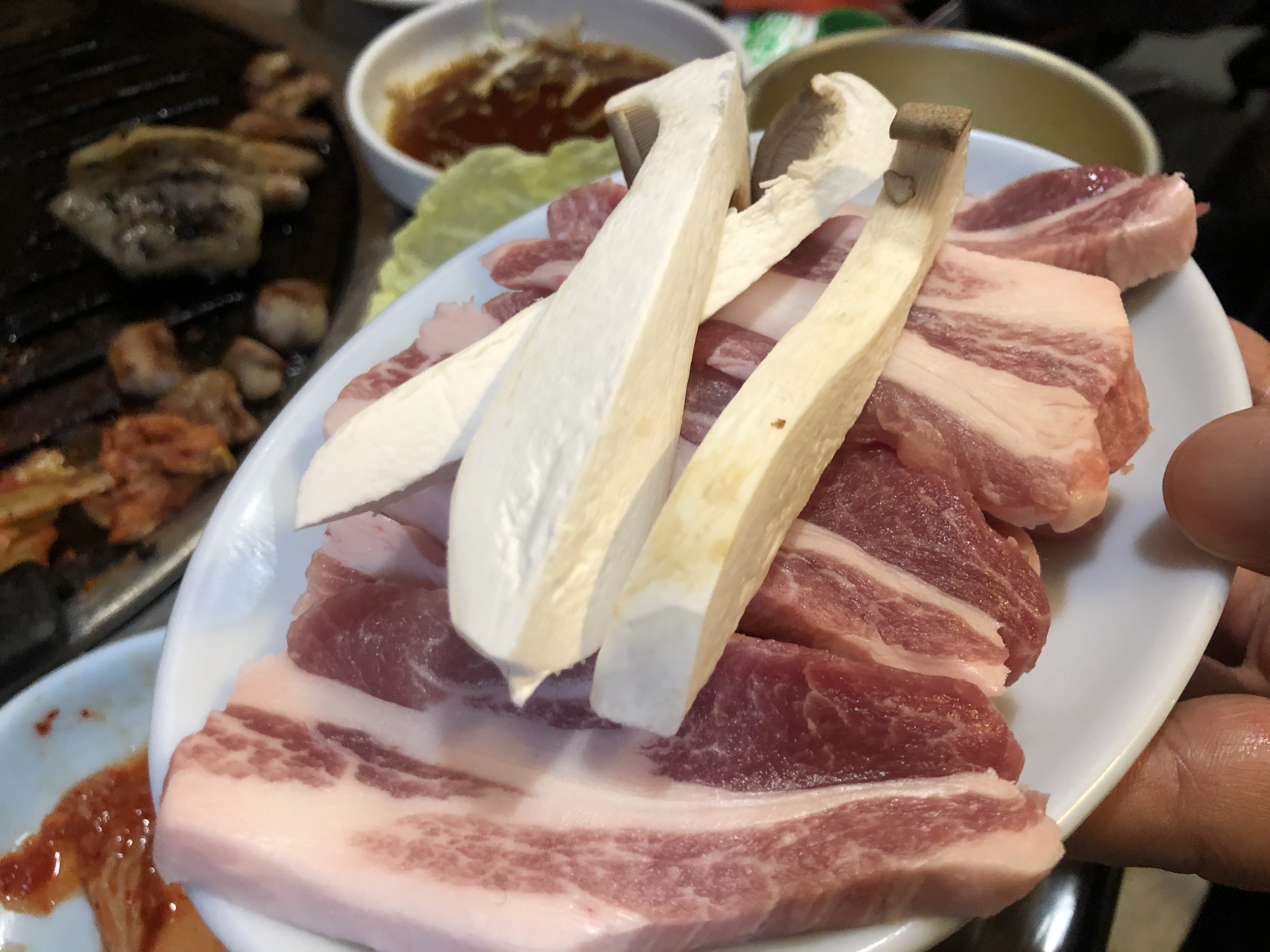 고기에는 고기뿐 아니라 버섯, 양파, 감자까지 제공되서 구워서 먹으면 더욱 맛있습니다!