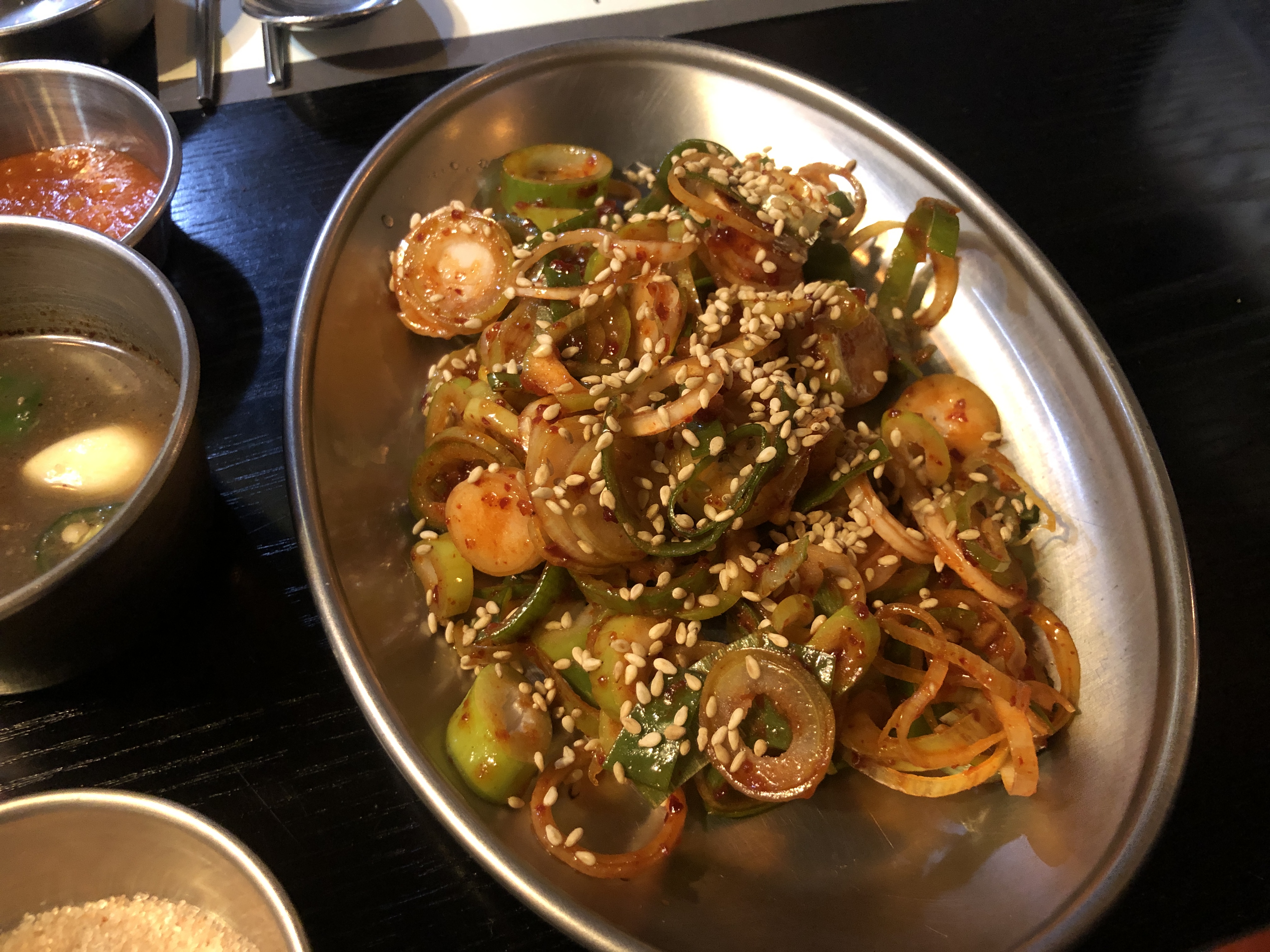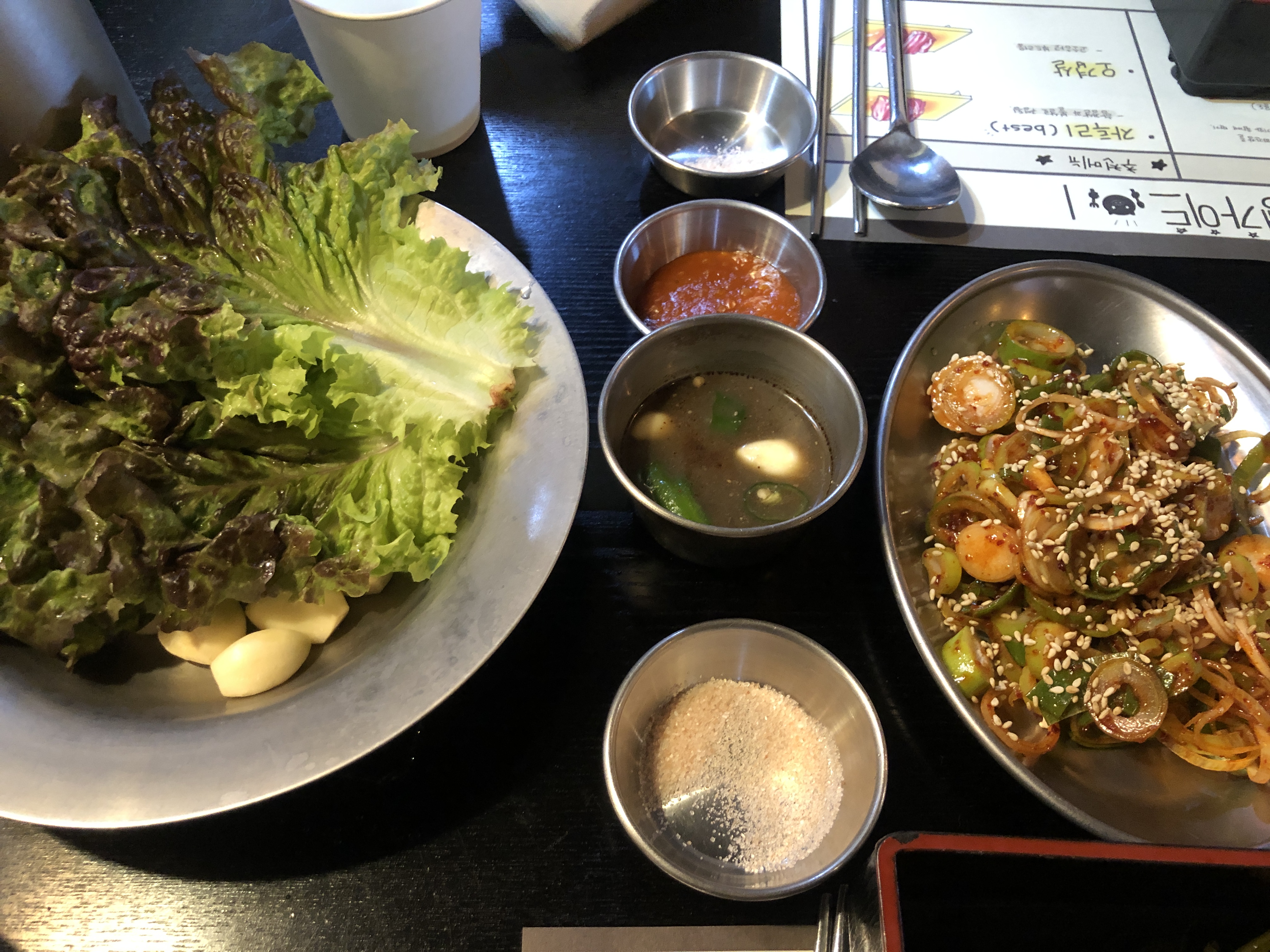 행당시장 맛집 돈슐랭의 케일절임에 와사비와도 싸먹어보고,