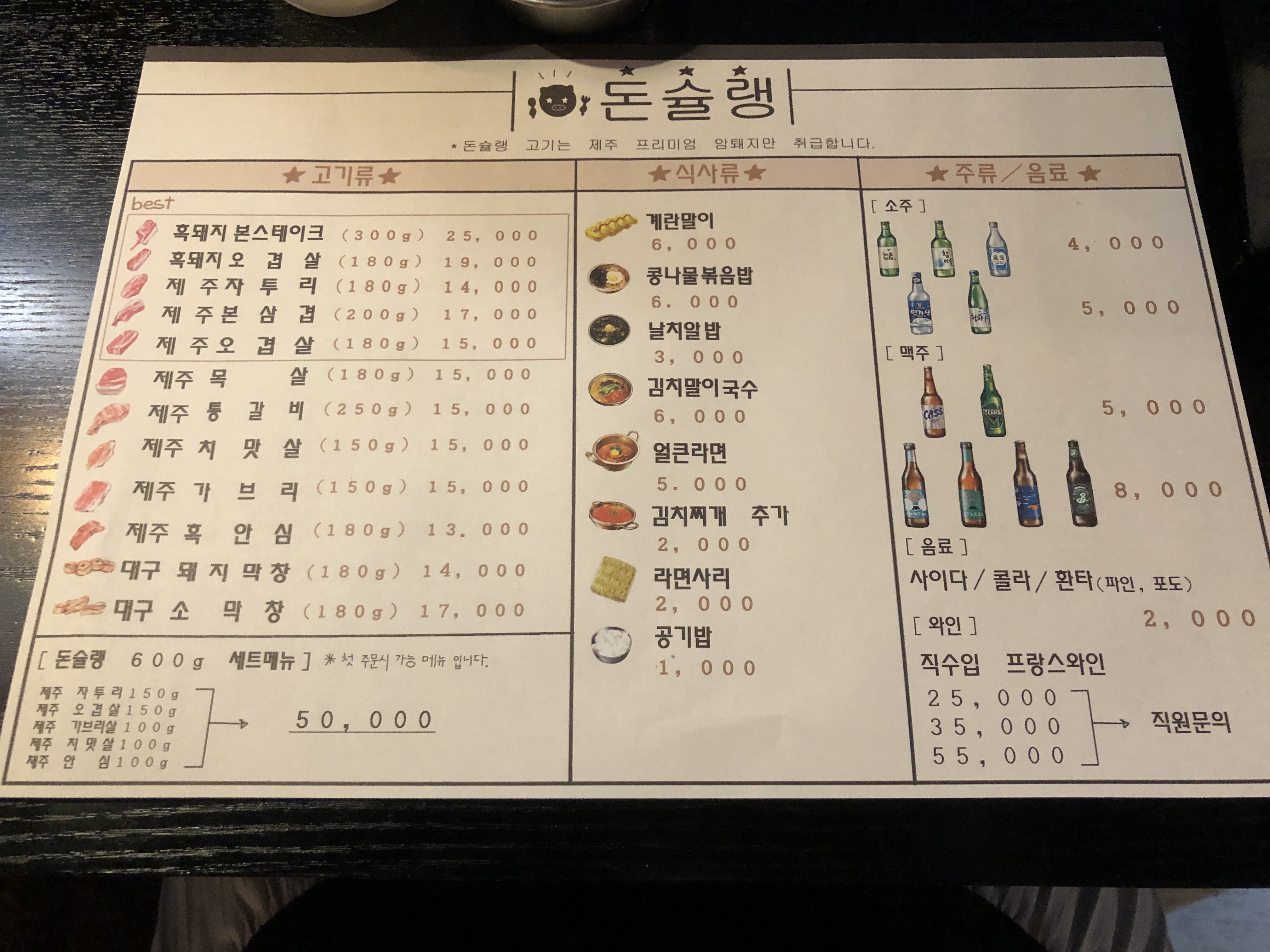 제주도산 고기와 와인이 있는 돼지고기집입니다