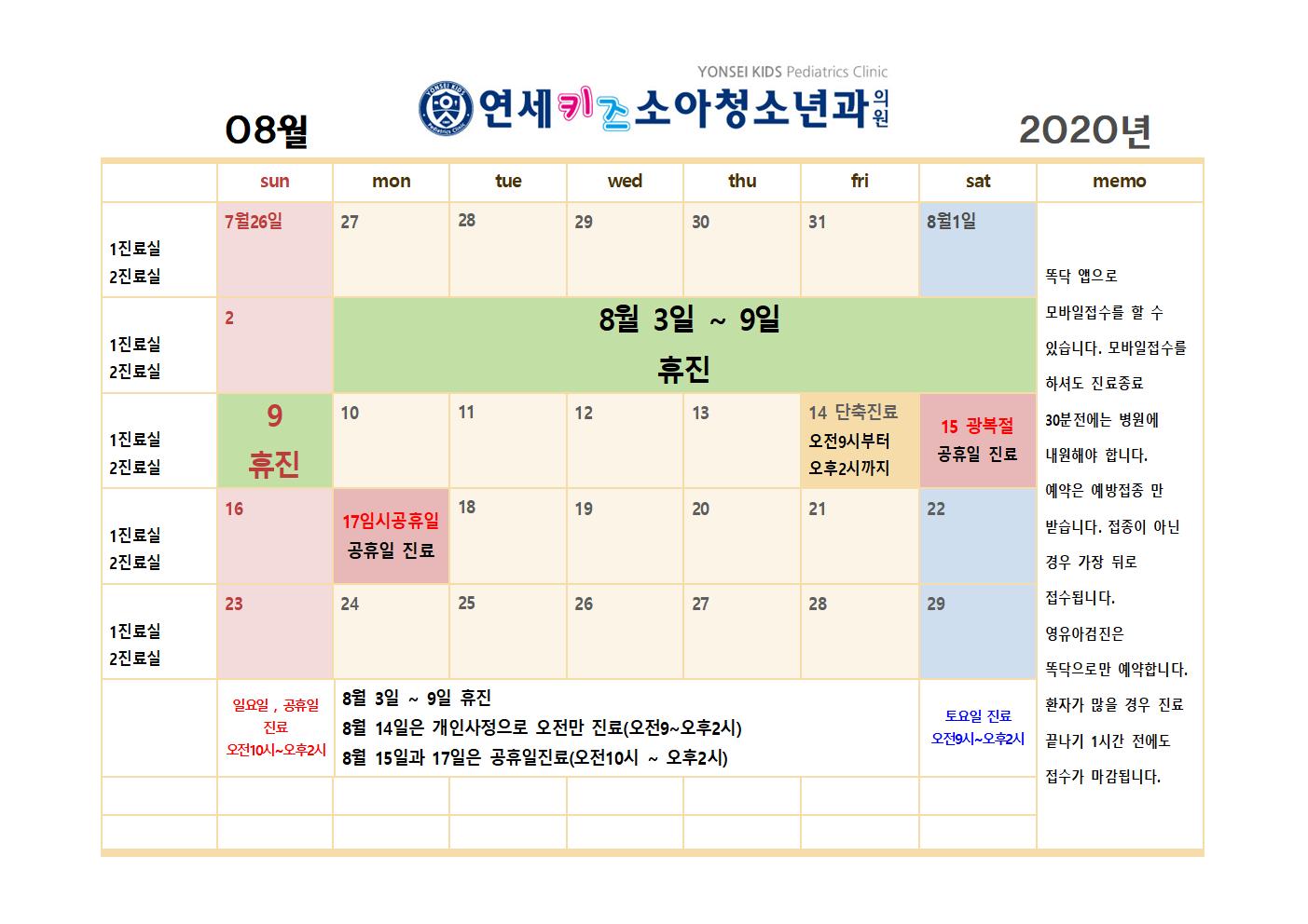 | 답십리 연세키즈, 8월 휴진안내(여름휴가) (0) | 2020.07.17 |