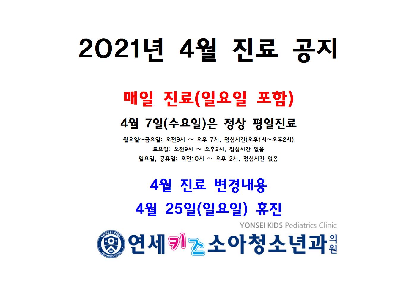 다만 개인사정으로 4월 25일 일요일에는 휴진합니다.