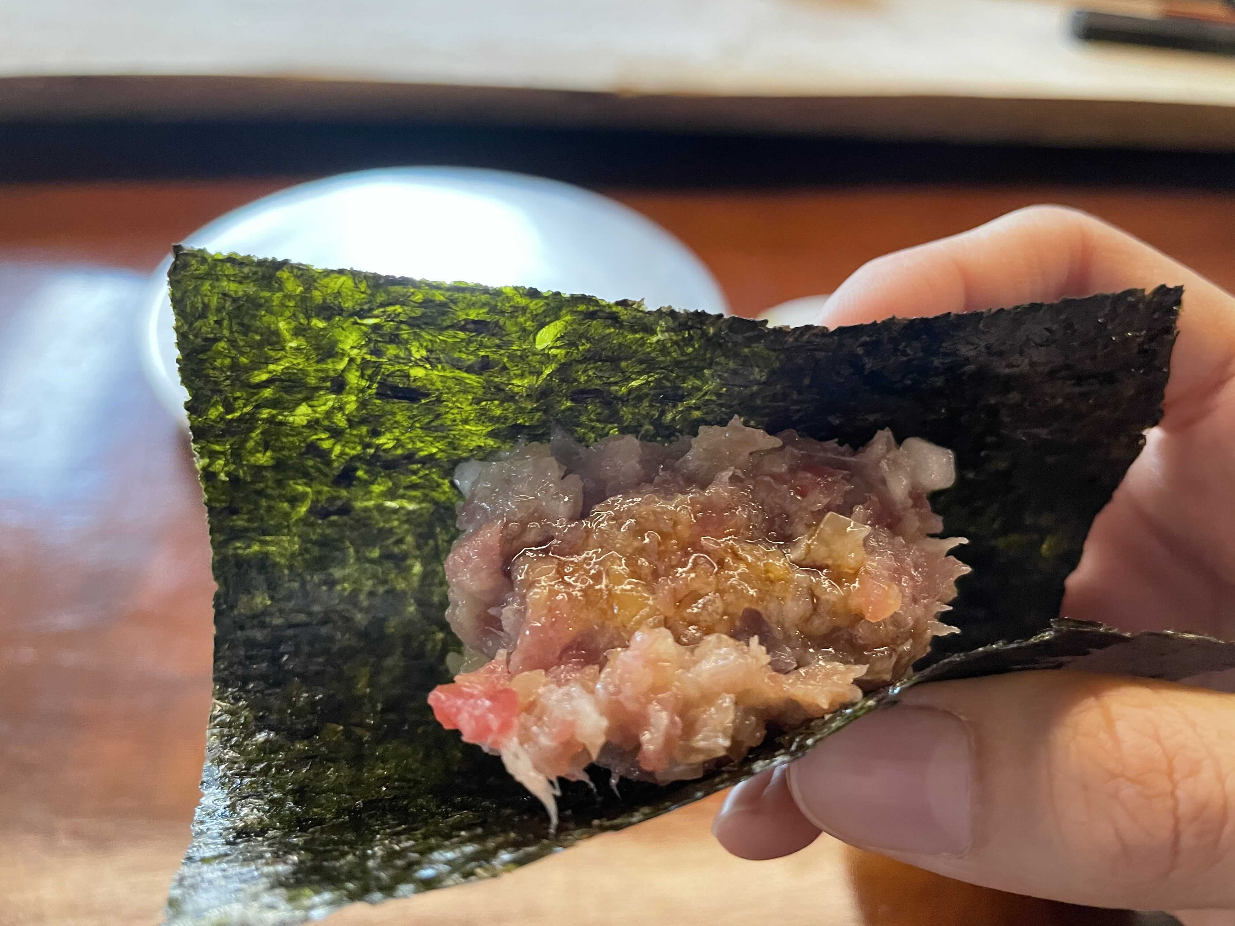서울 오마카세 스시 스시누하에서 제일 인상깊었던 것은 훈연한 고등어스시였습니다.