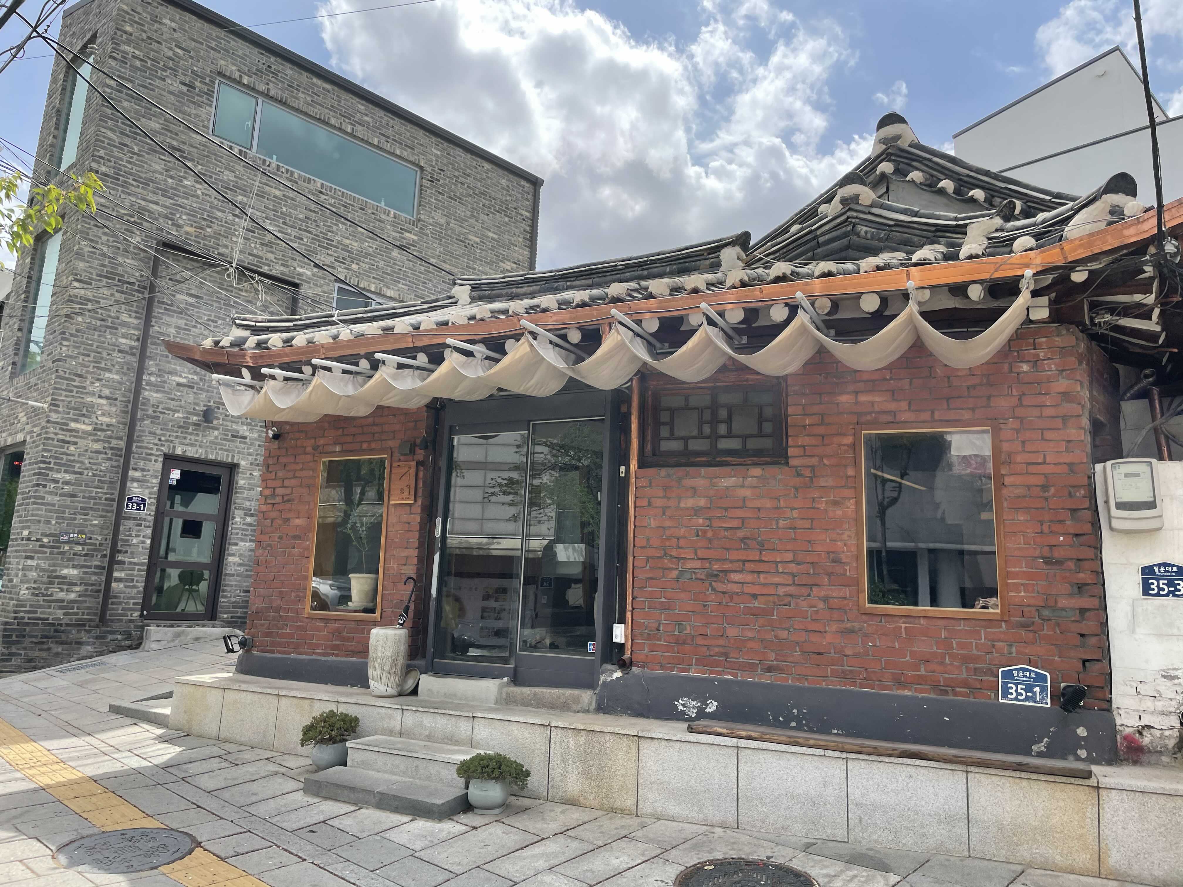 간판이 잘은 보이지 않는 단점이 있지만, 건물과 잘 어우러져있습니다.