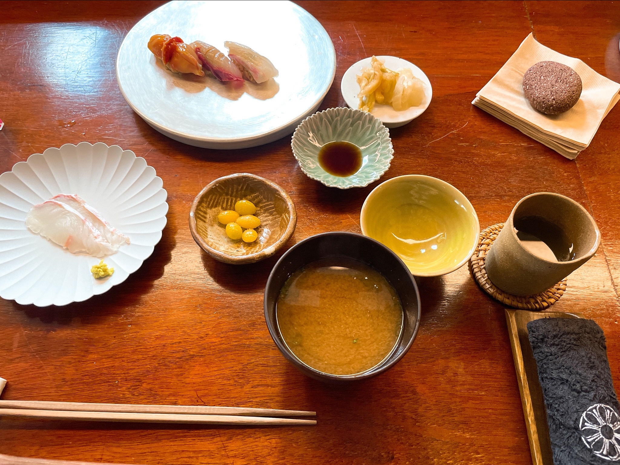 기본으로 미소된장국과 은행, 초생강이 나옵니다.