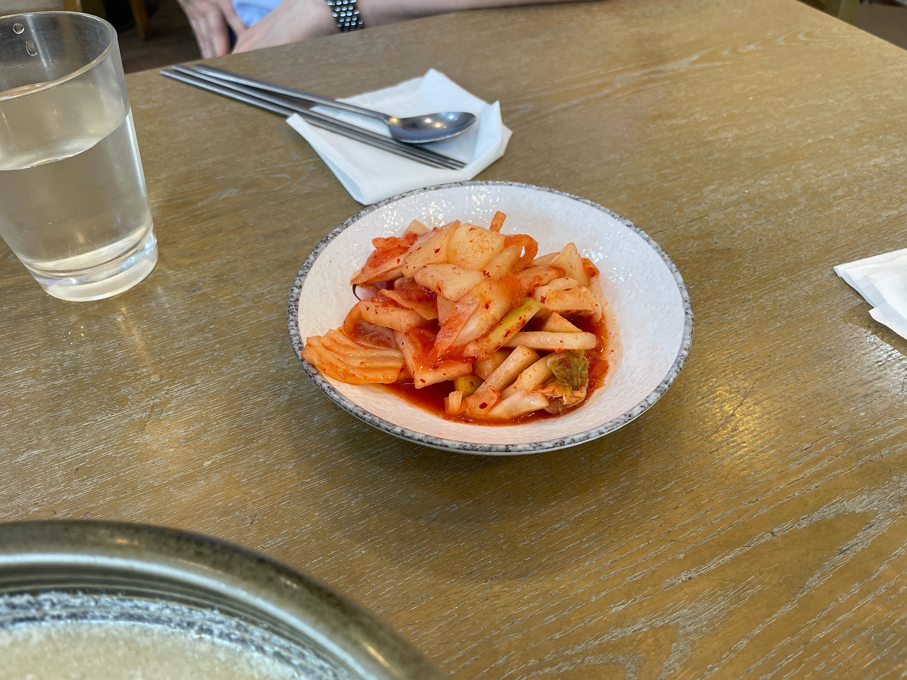 반찬은 김치가 나오는데 셀프라서 한쪽에 마련된 곳에서 가져와야 합니다~
