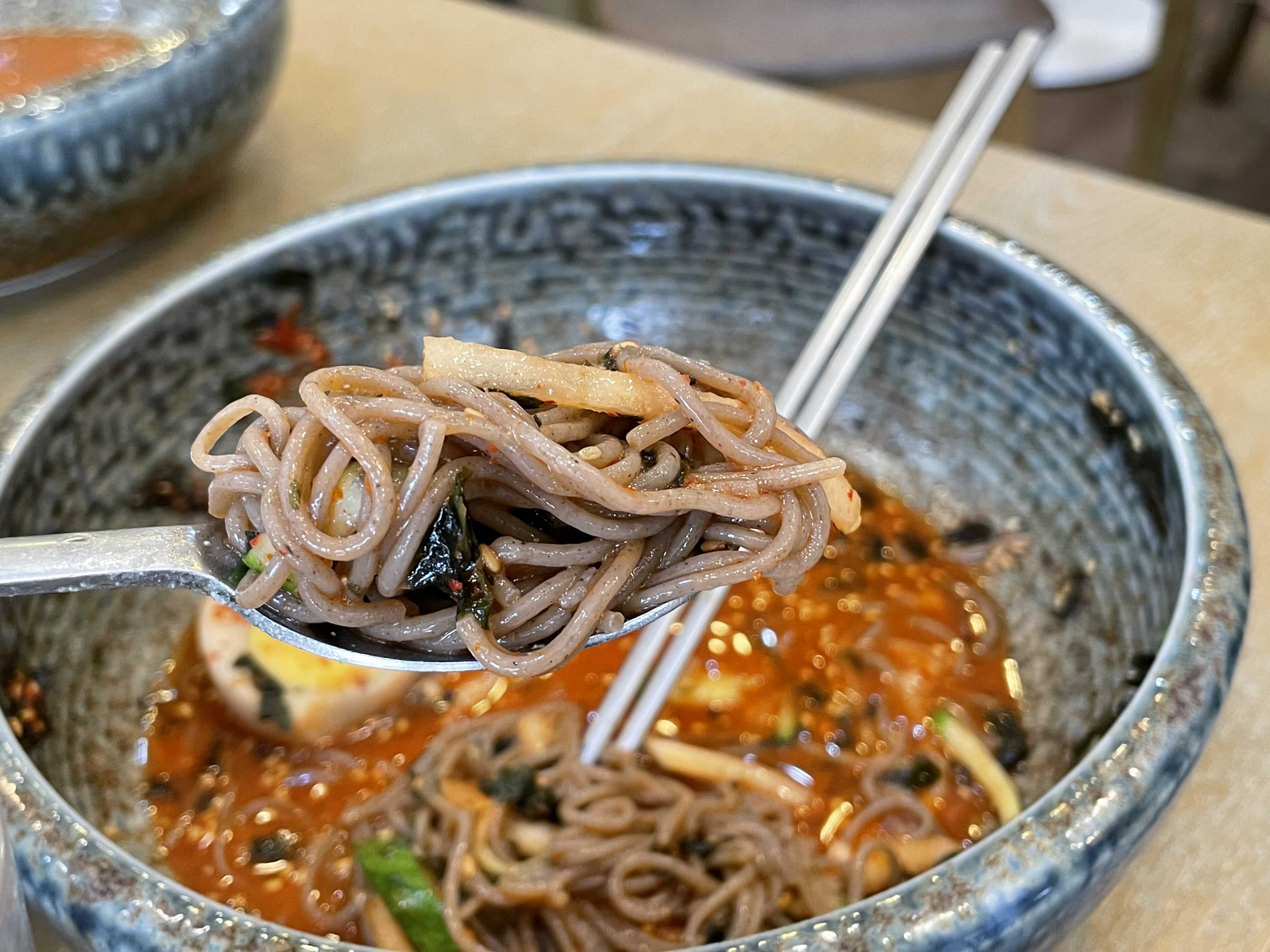 먹으면 먹을수록 은근히 맵지만 당기는 맛의 메밀 비빔국수입니다~