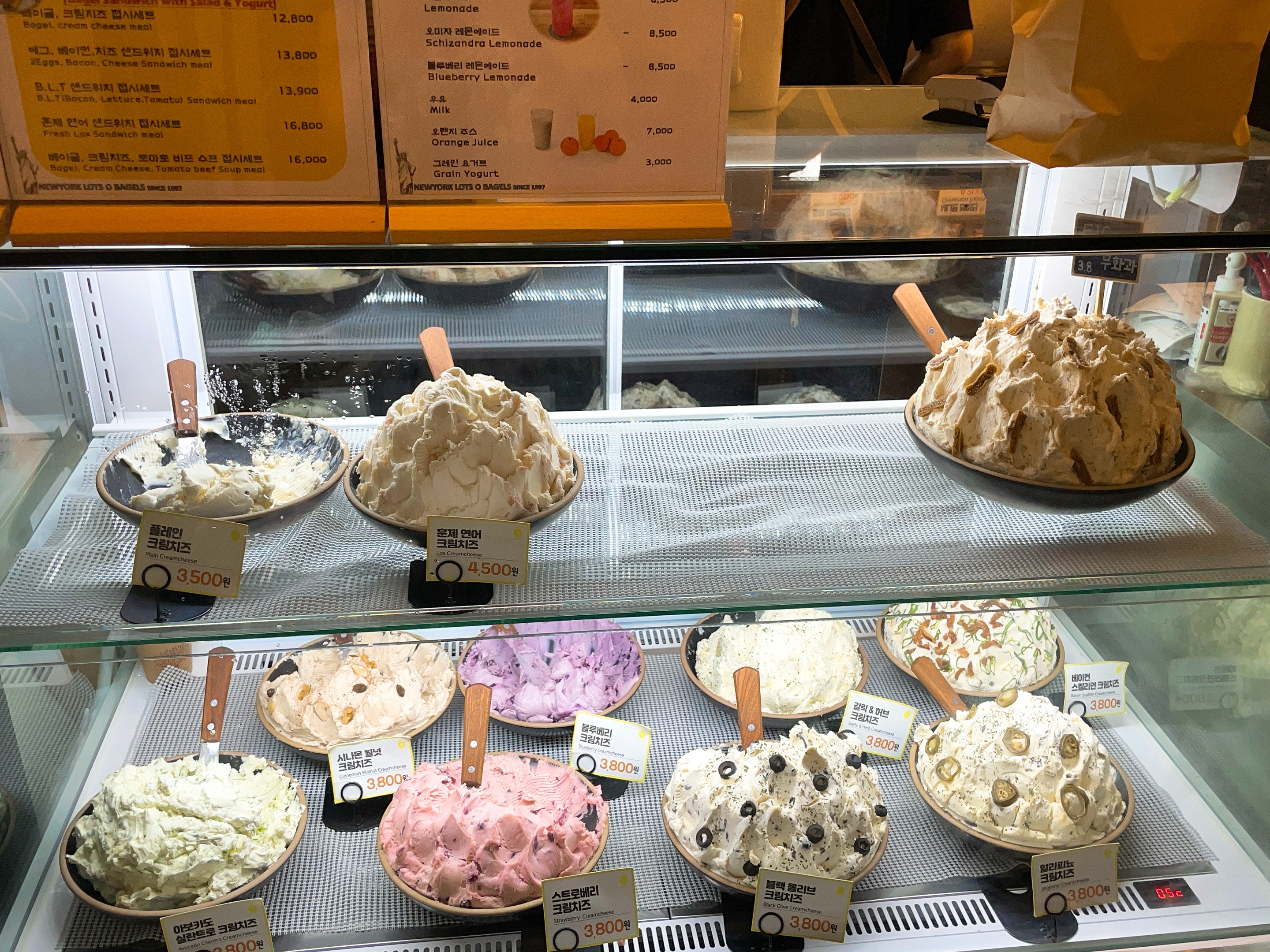 블루베리 크림치즈, 갈릭&허브 크림치즈, 베이컨 스켈리언 크림치즈까지.