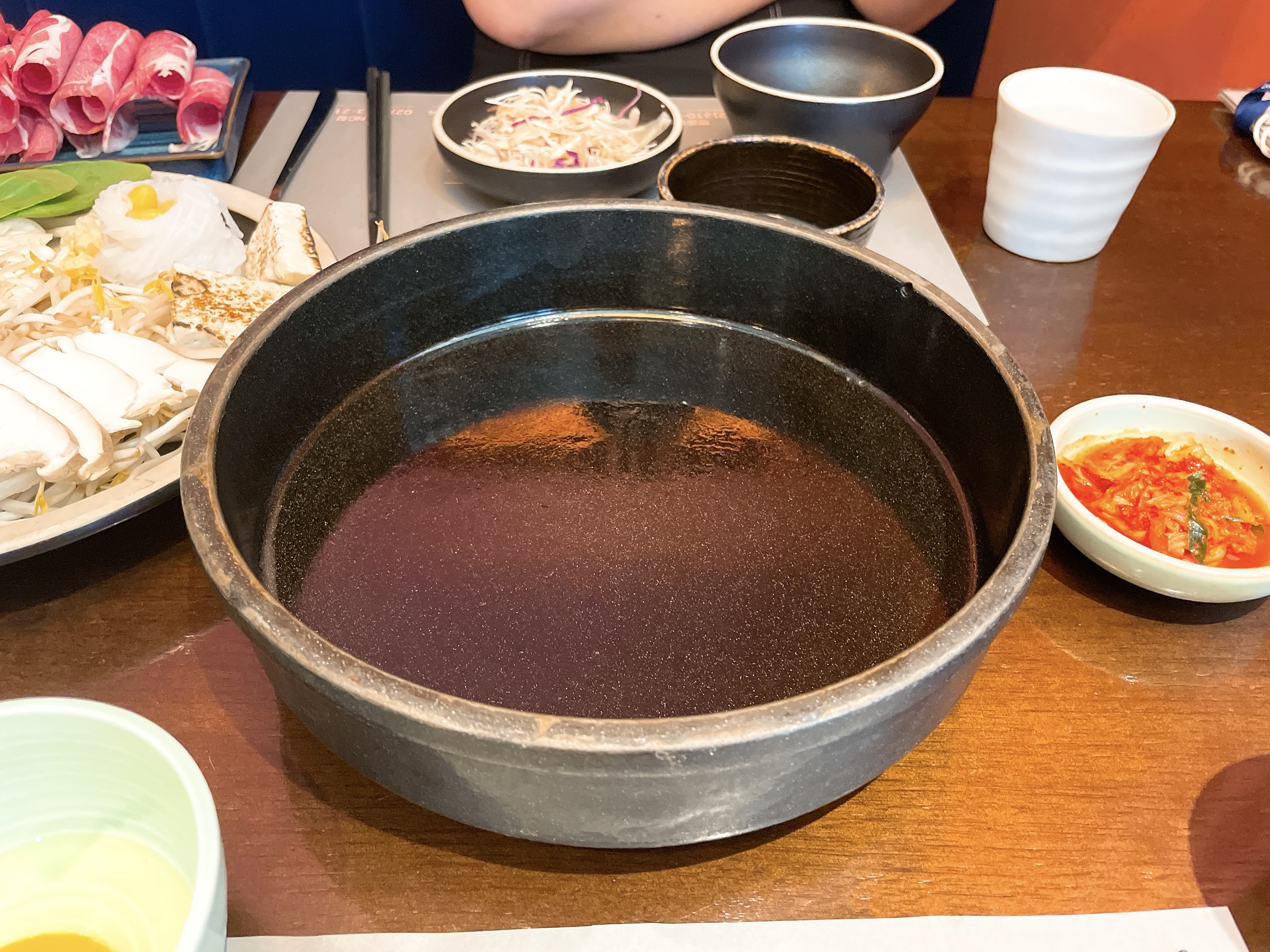 보글보글 국물이 자작하게 들어있는 스키야키는 샤브샤브와는 색다른 느낌을 주었습니다.