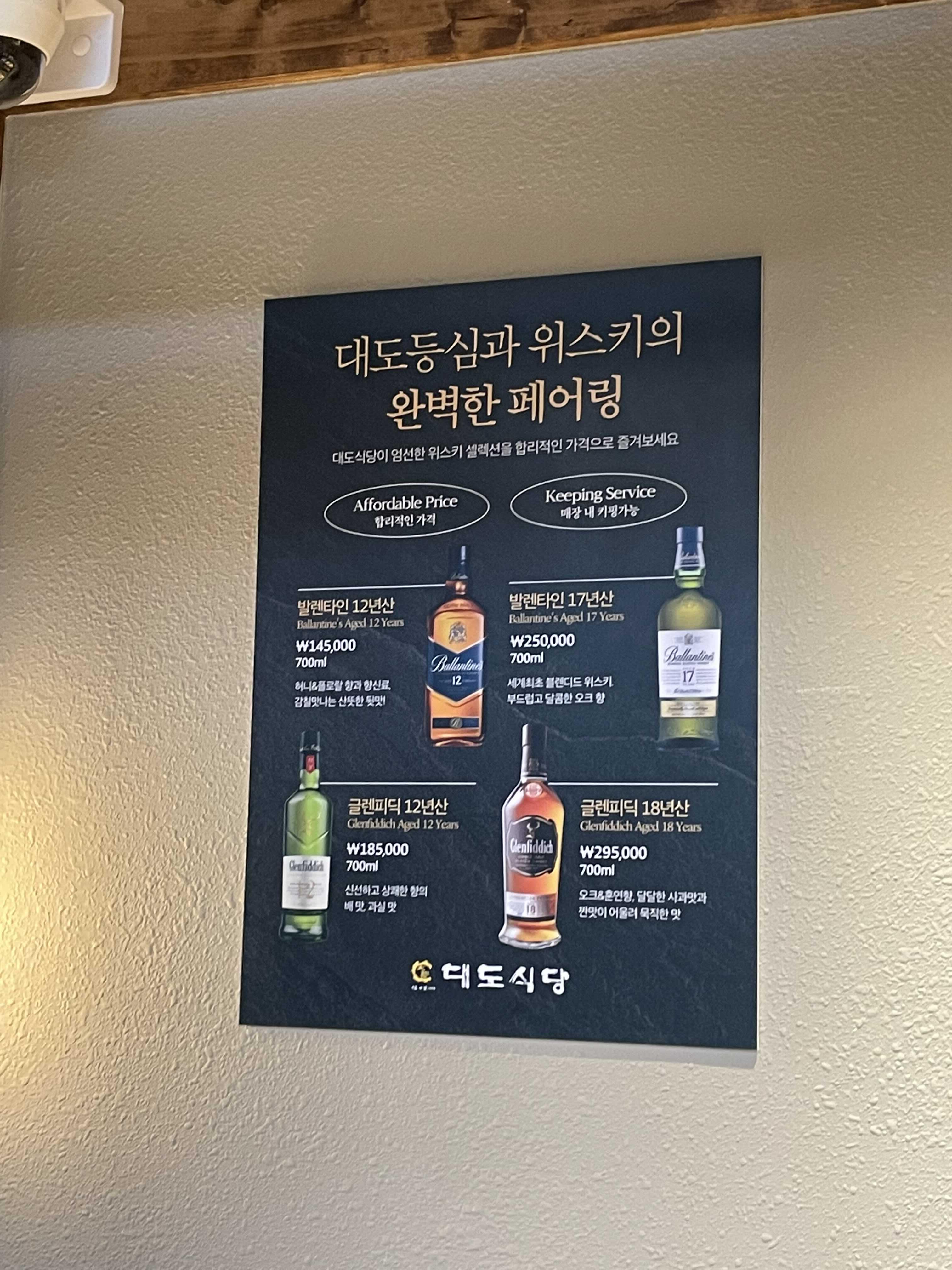 이전에는 보지 못했던 위스키들이 진열되어 있었고, 발렌타인과 글렌피딕 위스키들이 메뉴판에 등장했습니다.
