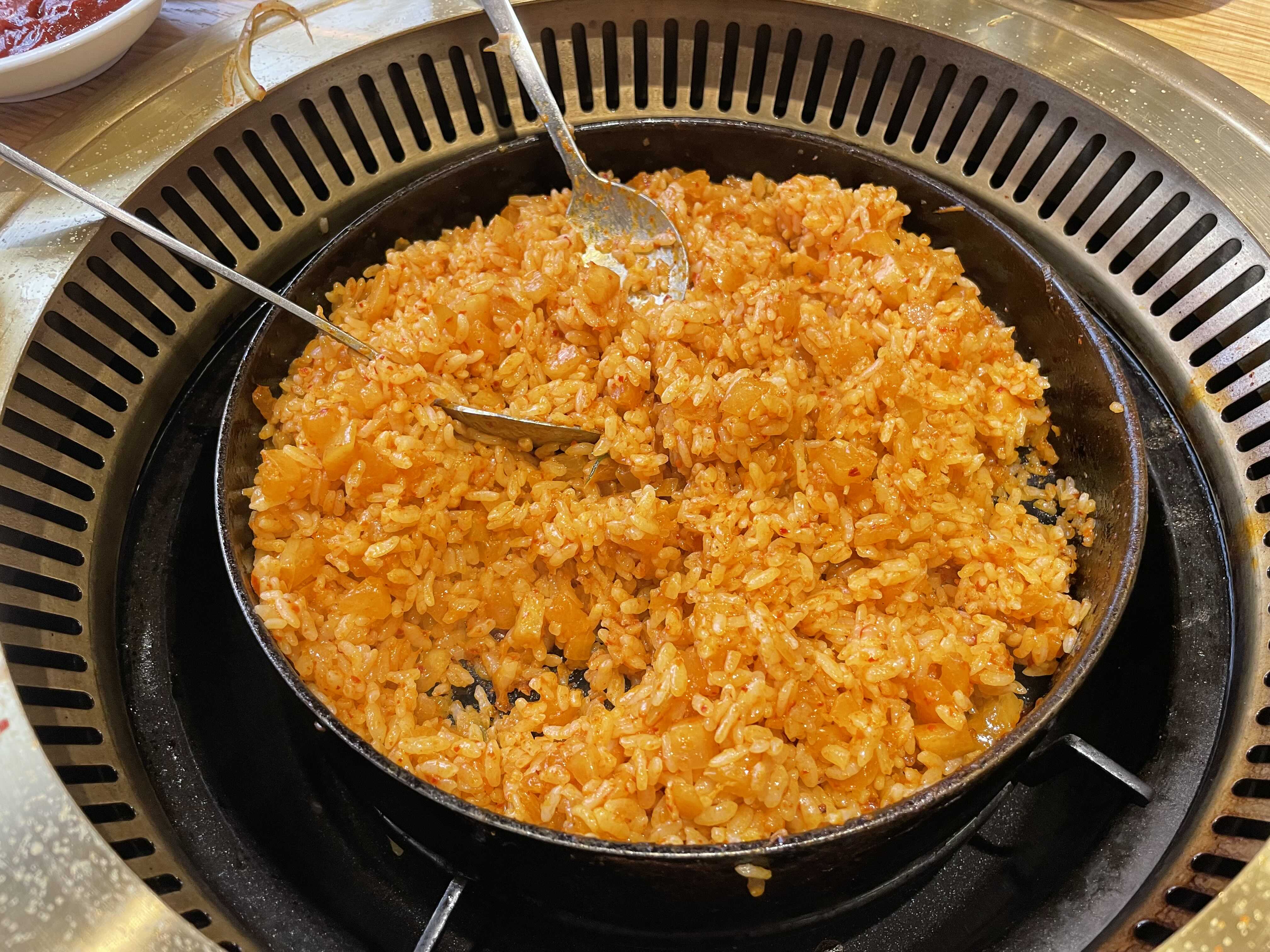 깍두기와 국물이 보글보글 끓을때까지 기다리면 직원분이 맛있는 볶음밥으로 완성해주십니다.