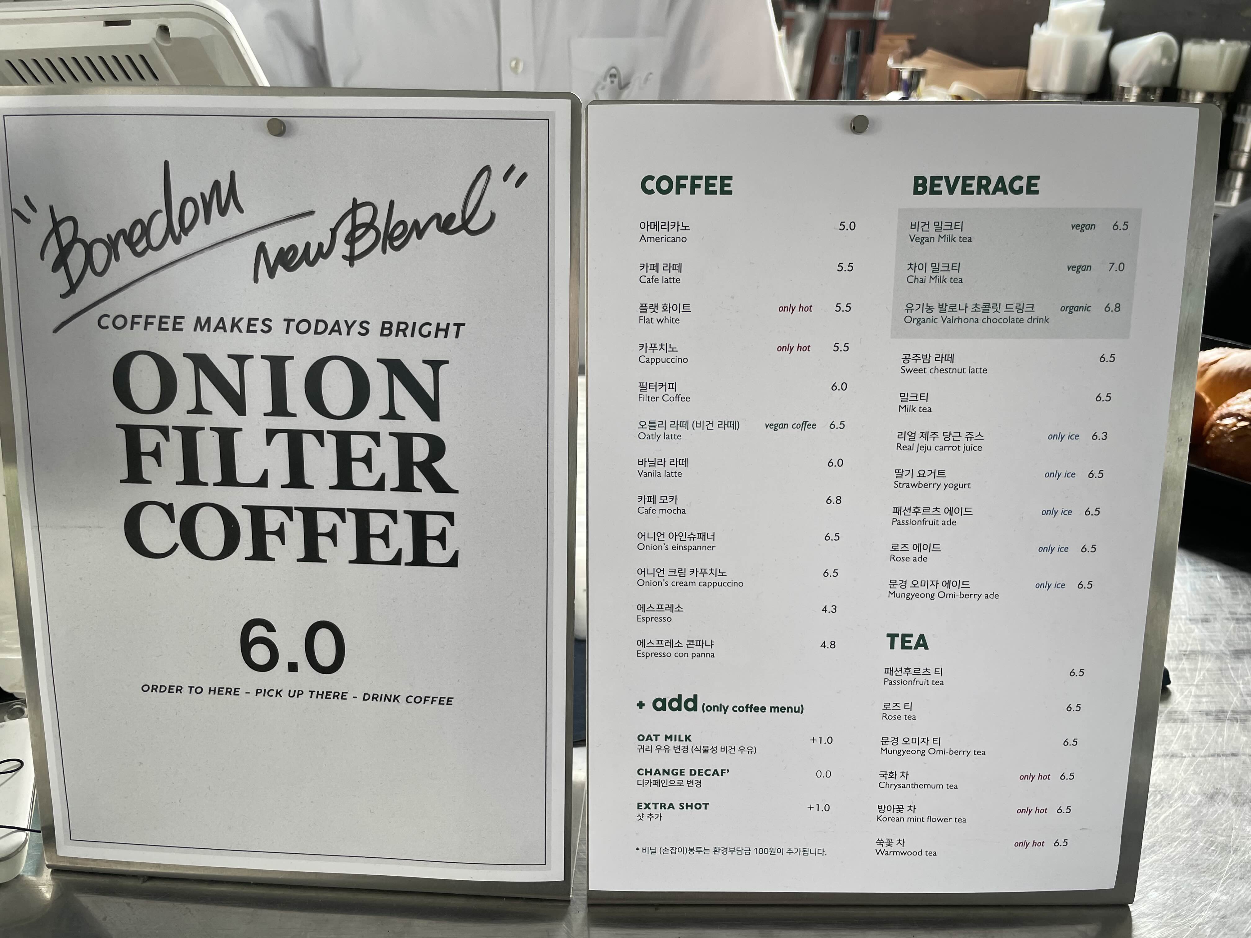 성수 핫플레이스 어니언의 커피나 음료는 꽤 비싼데요.