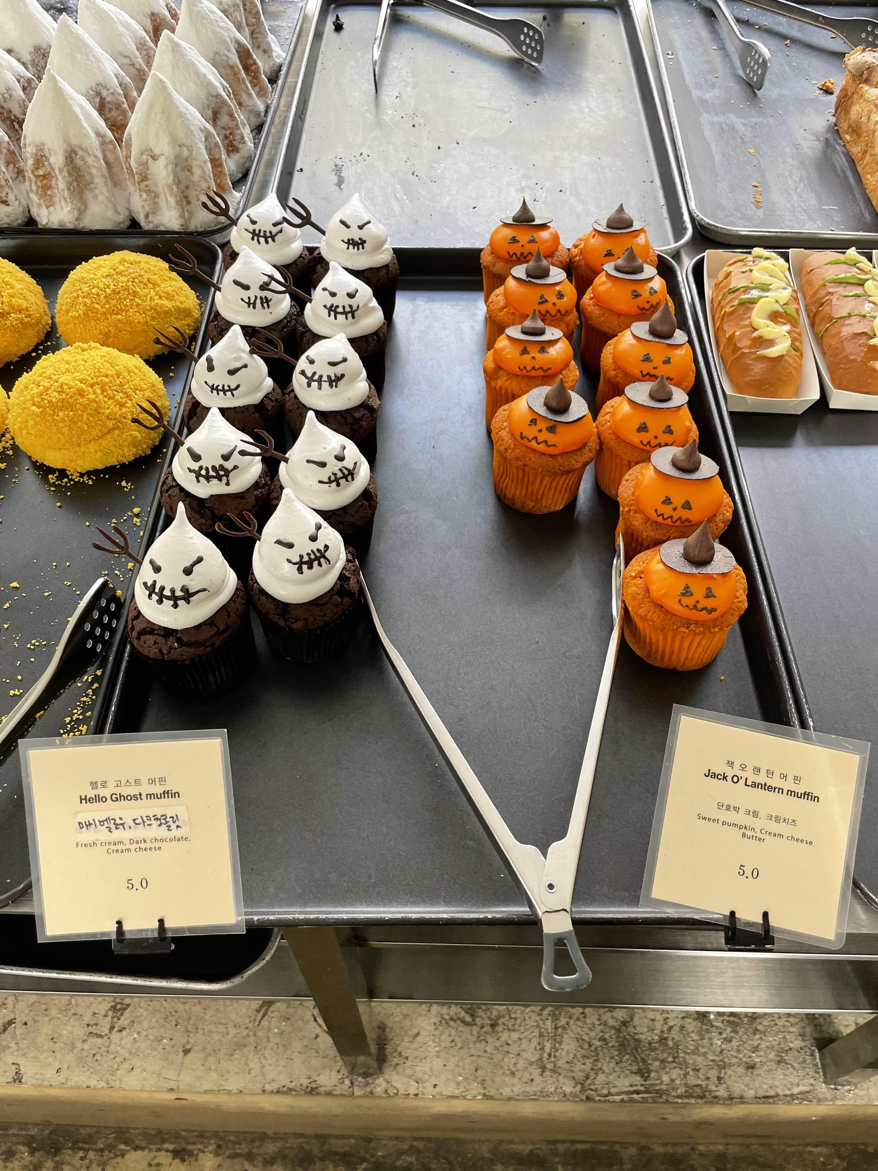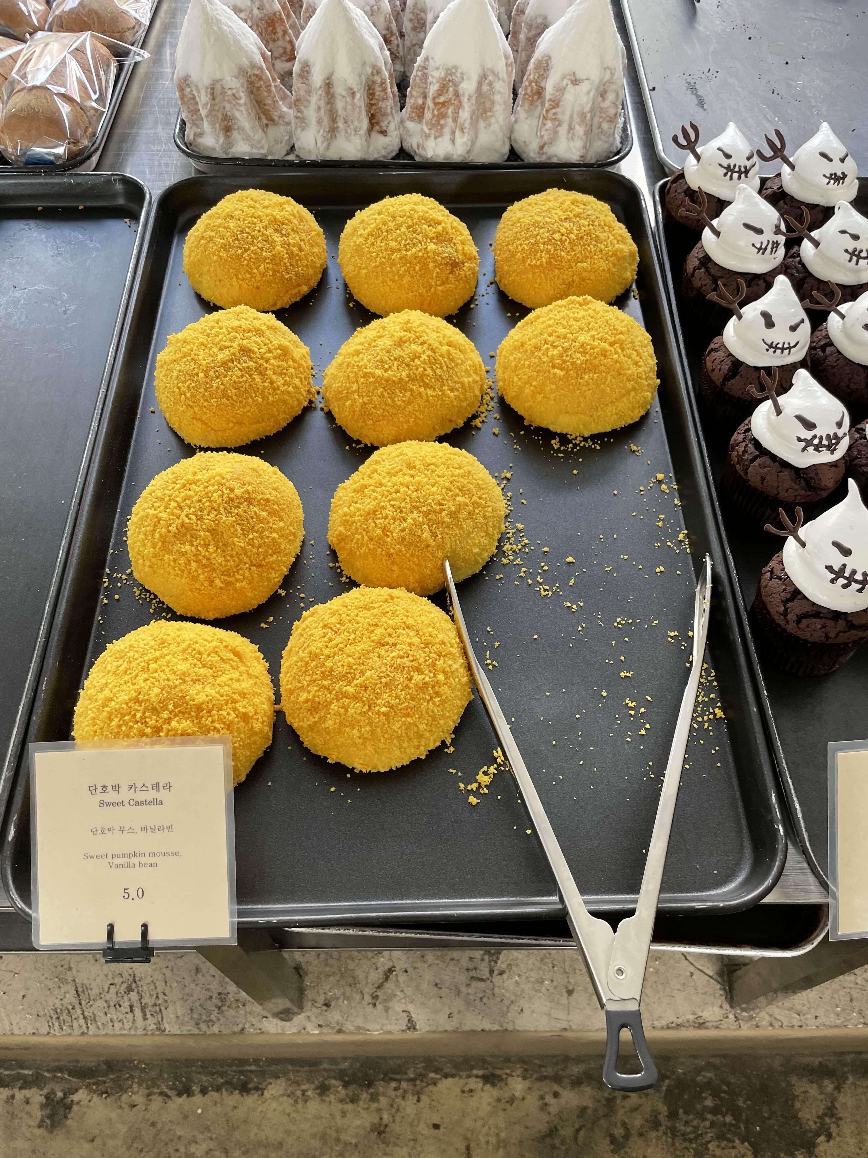 단호박 카스테라, 할로윈 기념 머핀도 있고 아보카도 명란 바게트도 있었습니다.