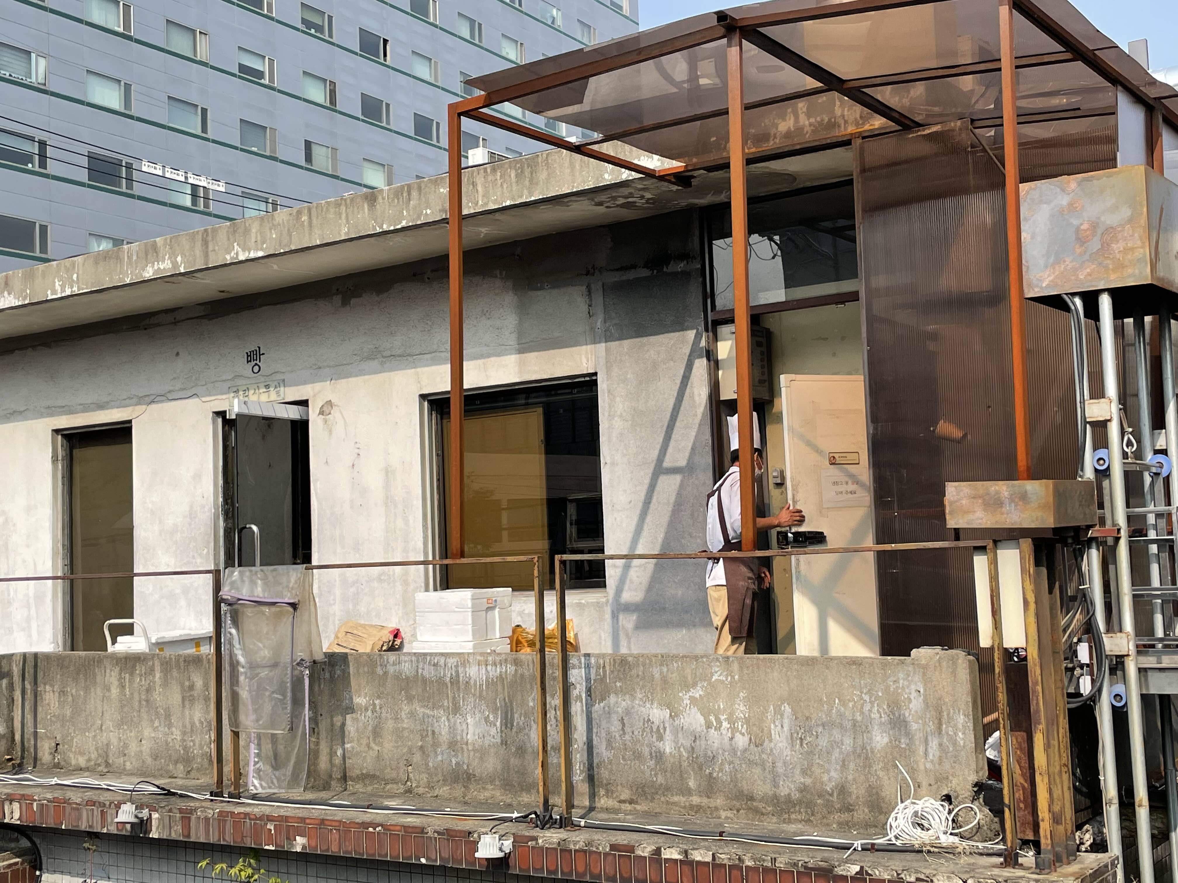 신일금속이라는 이름이 적힌 문이나 건물 전체를 살려서 익스테리어나 인테리어를 한 점이 신기했습니다~