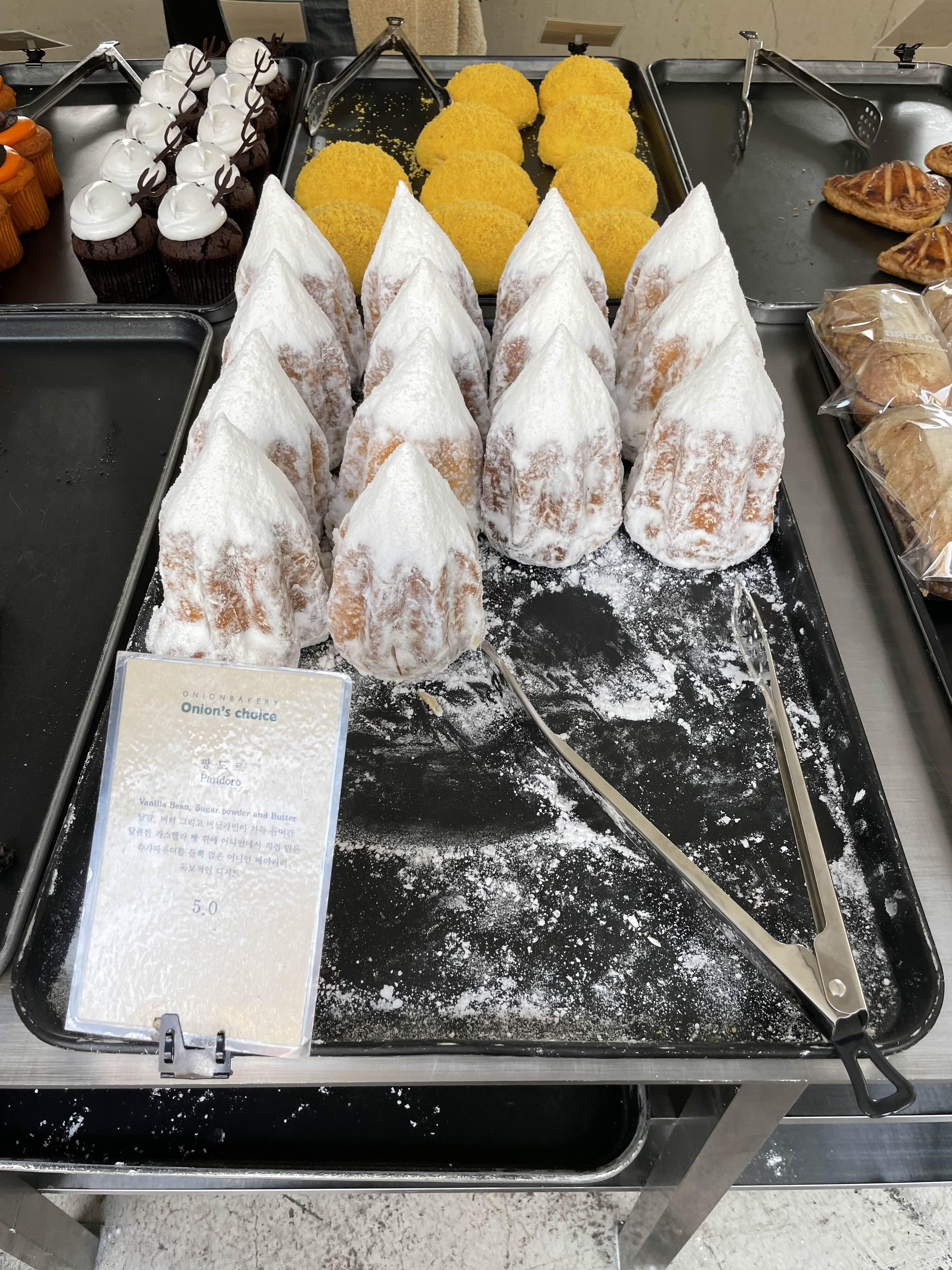 빈티지 루프탑 카페 어니언의 대표빵인 팡도르, 앙버터, 트리플맘모스,
