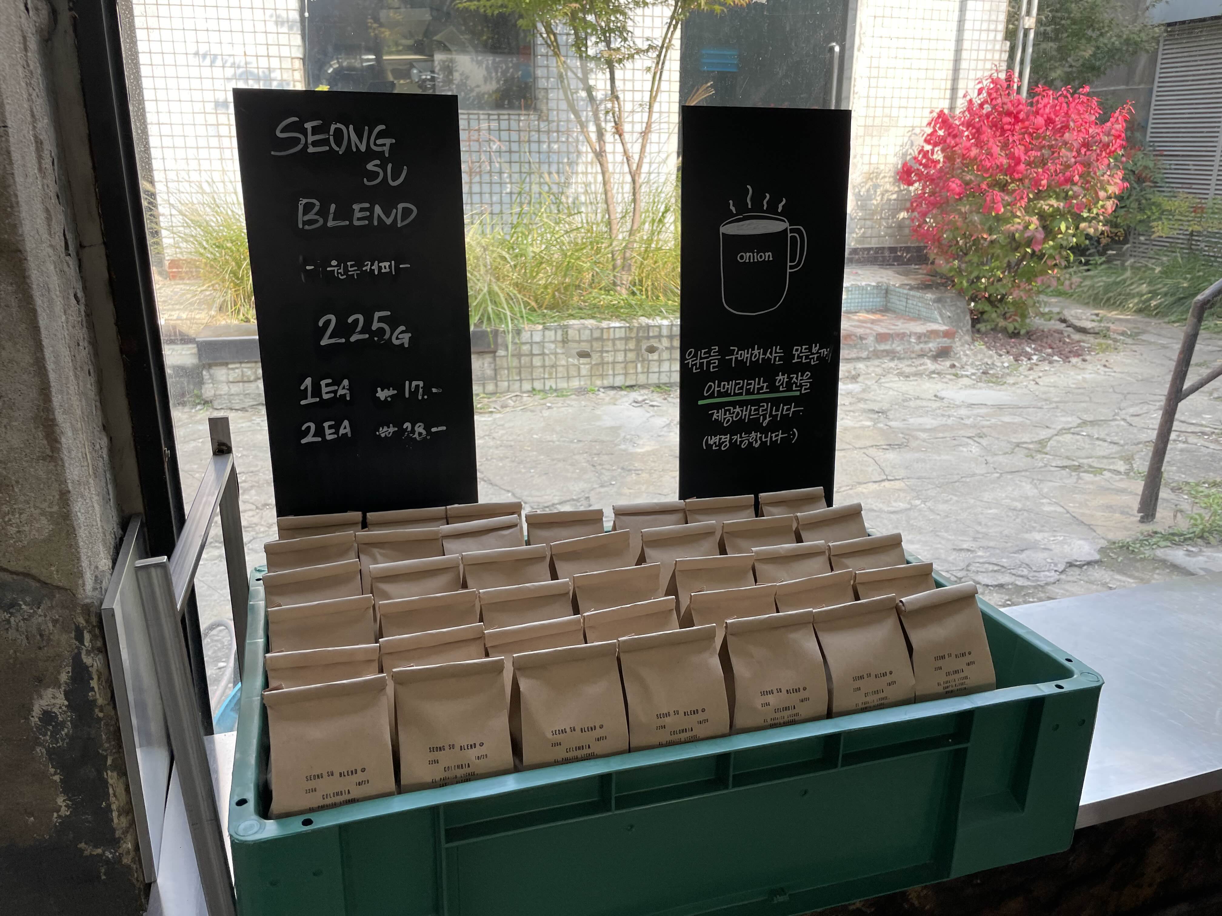 테라스 빵집 어니언의 입구에는 원두커피도 판매하고 있었는데요,