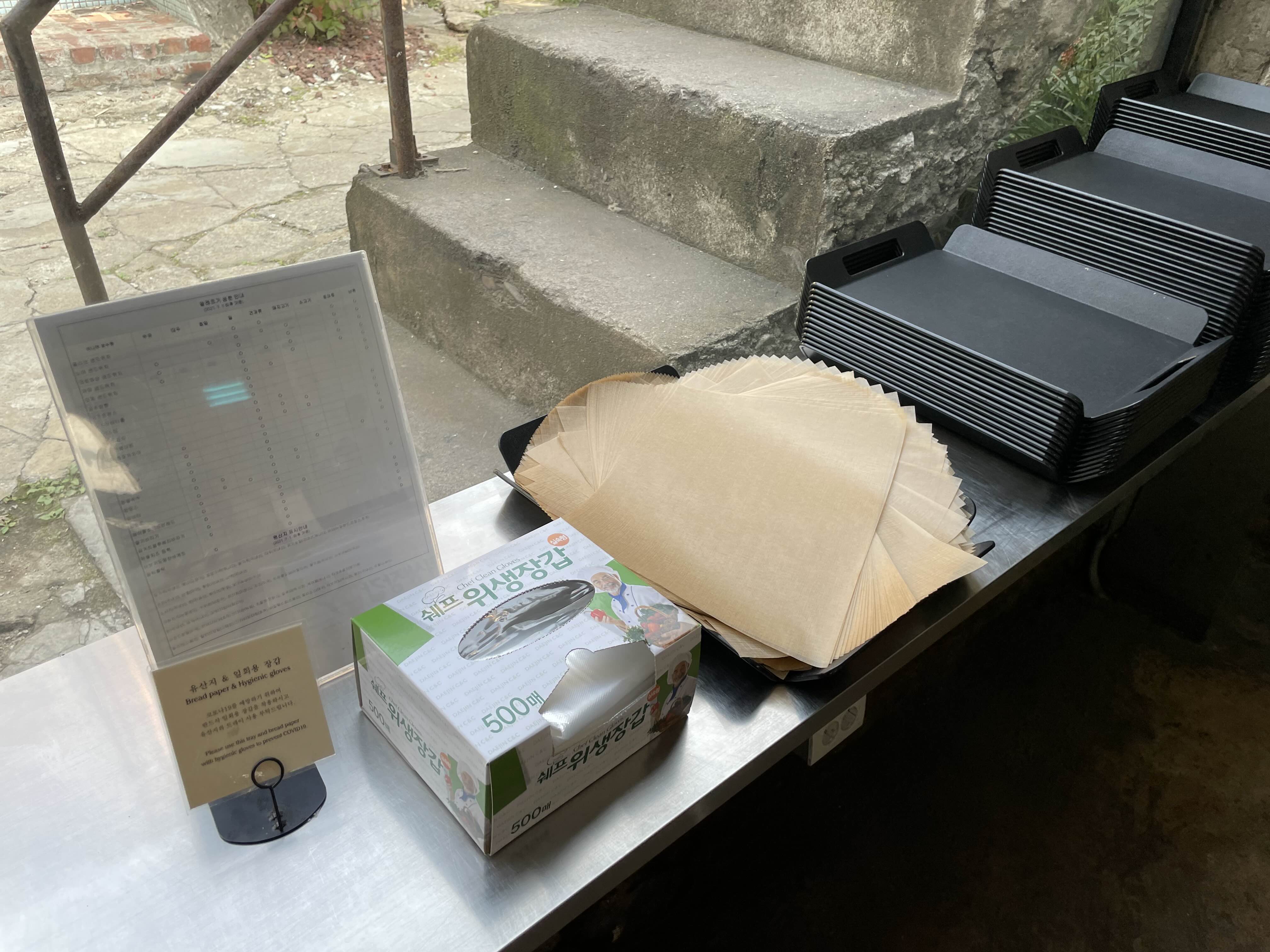 코로나 시대에 걸맞게 일회용 비닐장갑도 준비되어 있습니다.