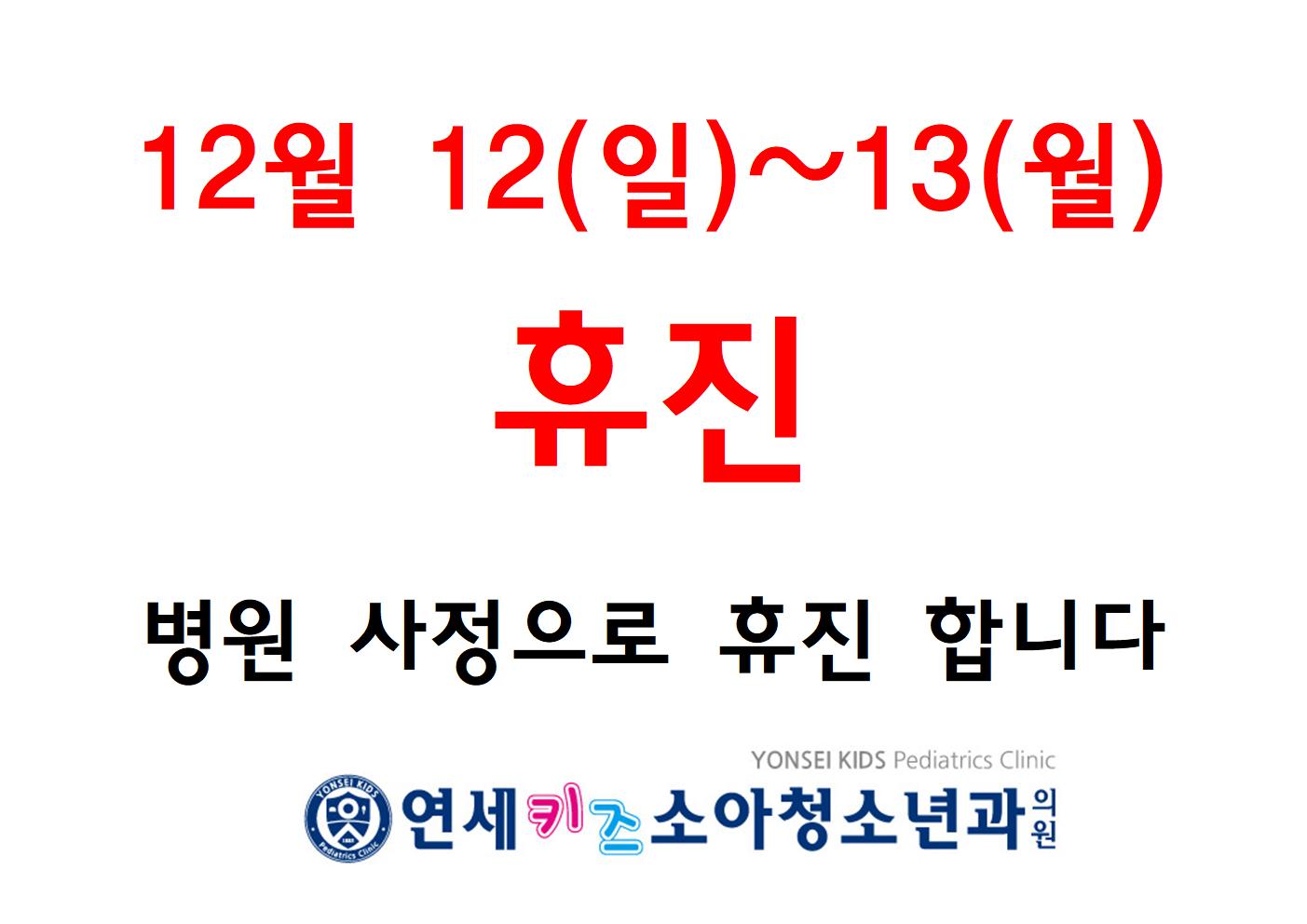 12월 12일(일요일)부터 13일(월요일)까지 휴진합니다.