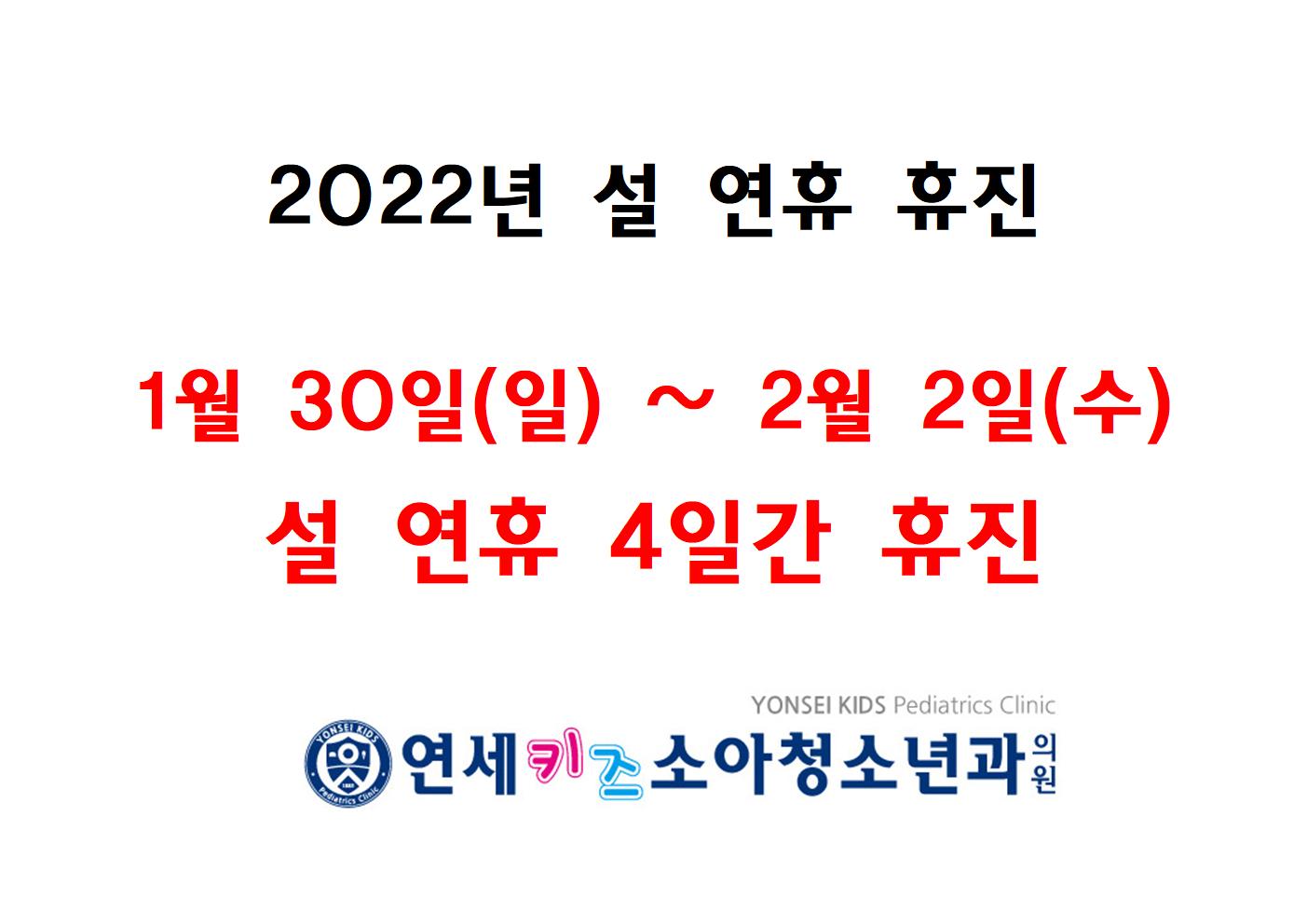 2022년 설 연휴 휴진 (답십리 연세키즈)