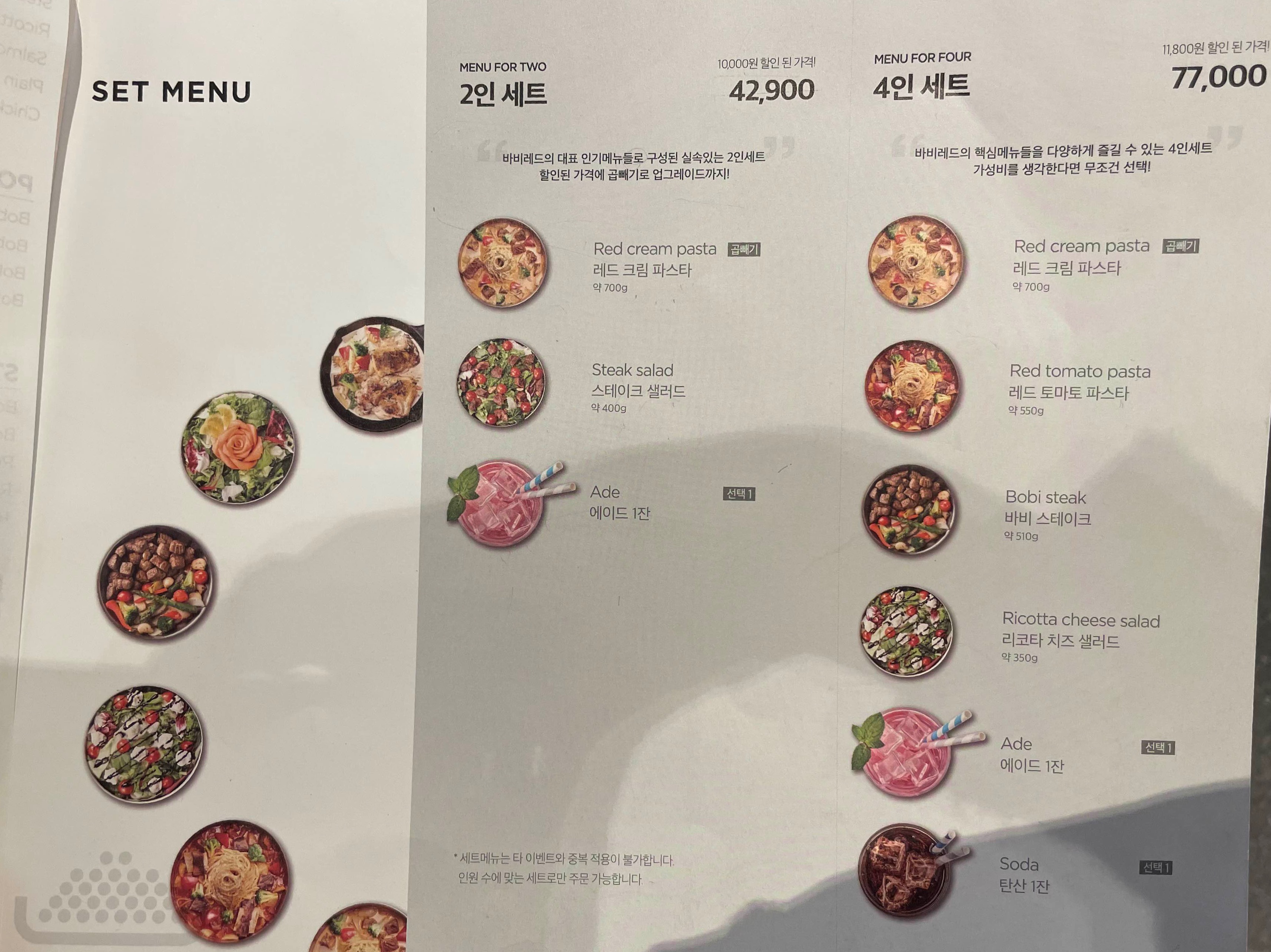 아쉽게도 파스타 메뉴를 찍지 못했는데요..