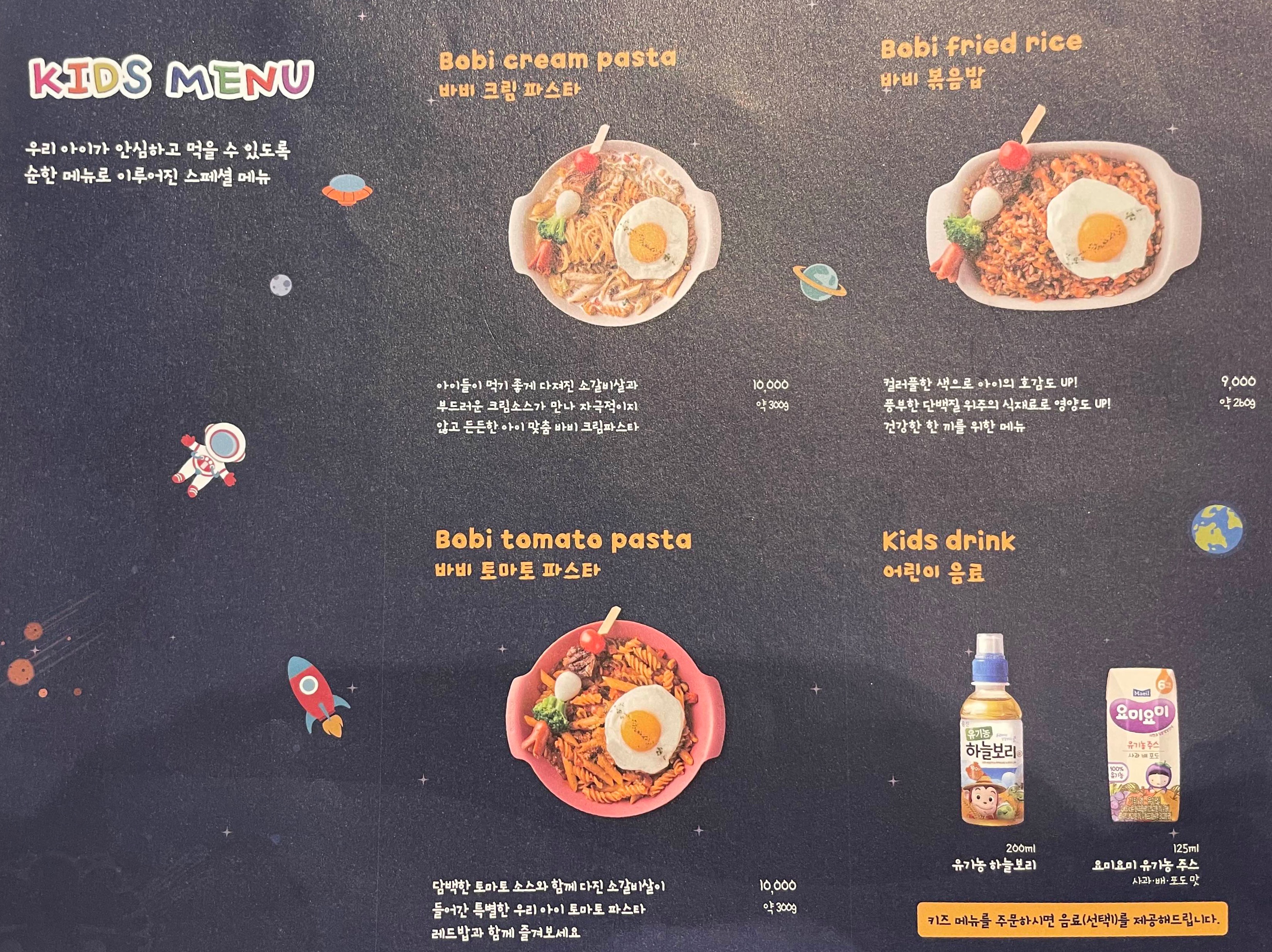 아이랑 가기 좋은 스타필드 바비레드에는 키즈 메뉴가 따로 있어서 아이들과 함께 먹기에도 좋아 보였습니다!