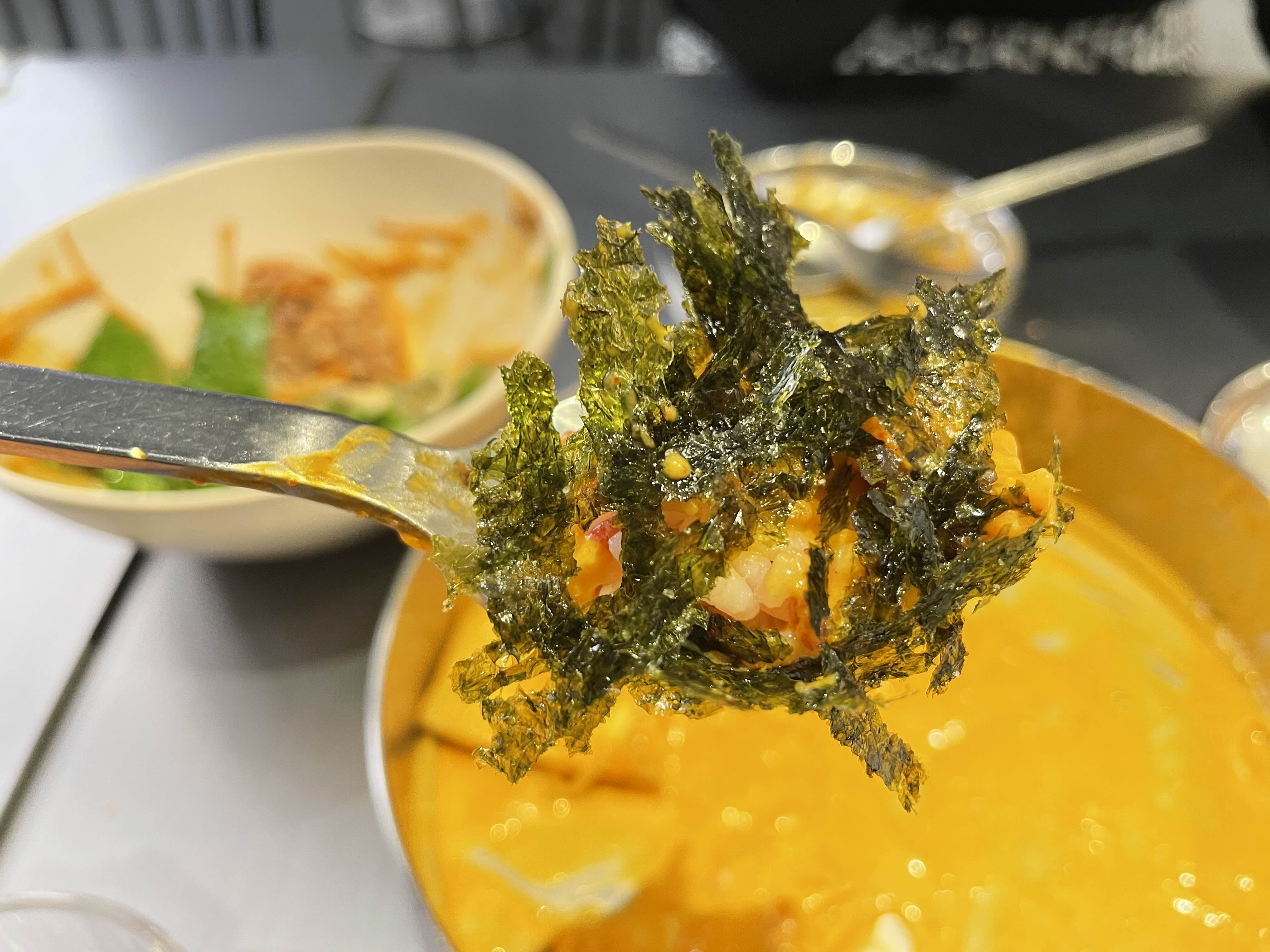 그래서 저희도 잊지 않고 밥과 김가루를 가져다 함께 먹었습니다~