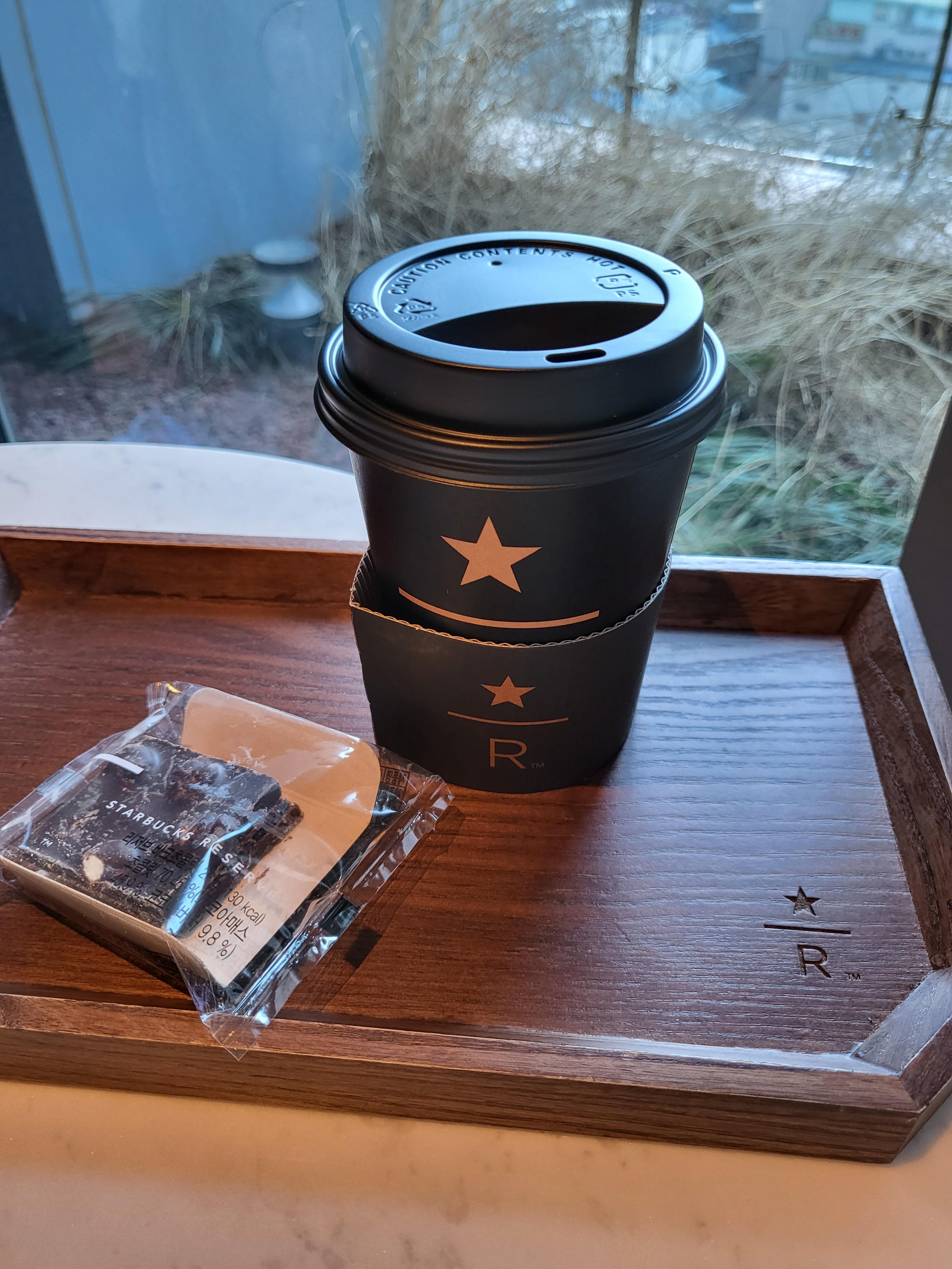 스타벅스 리저브 매장에서만 즐길 수 있는 커피와 초콜렛을 먹으며 여유를 즐겨보았습니다.