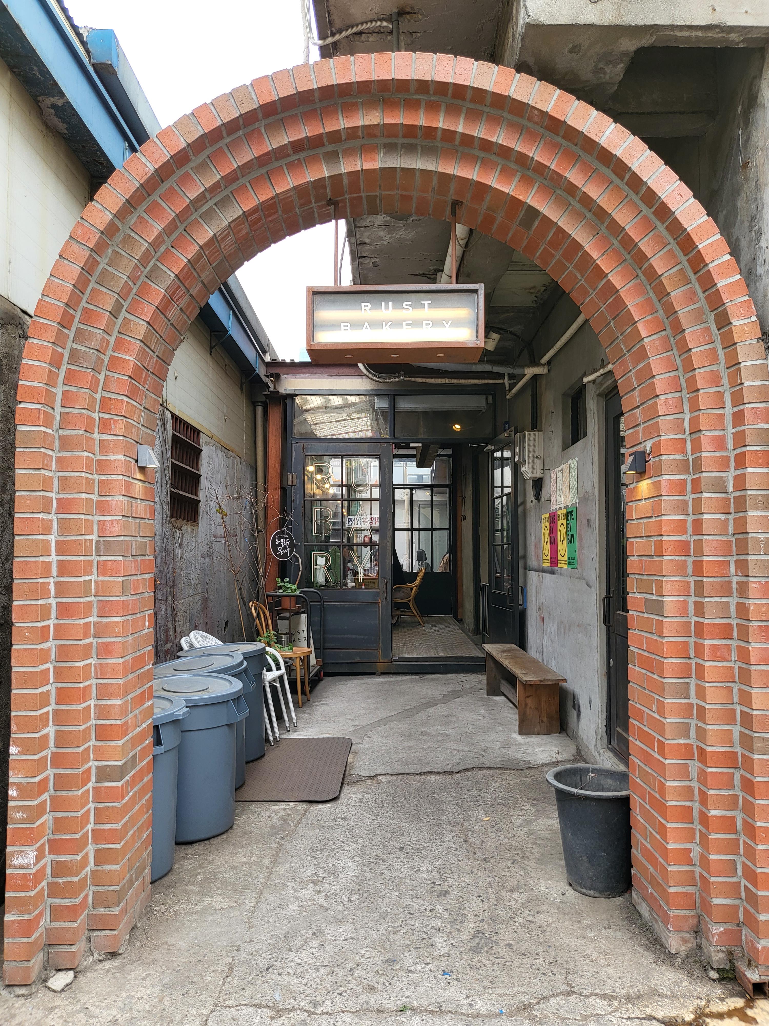 벽돌로 된 아치형 대문이 인상적인 문래 창작촌 카페 러스트 베이커리입니다~
