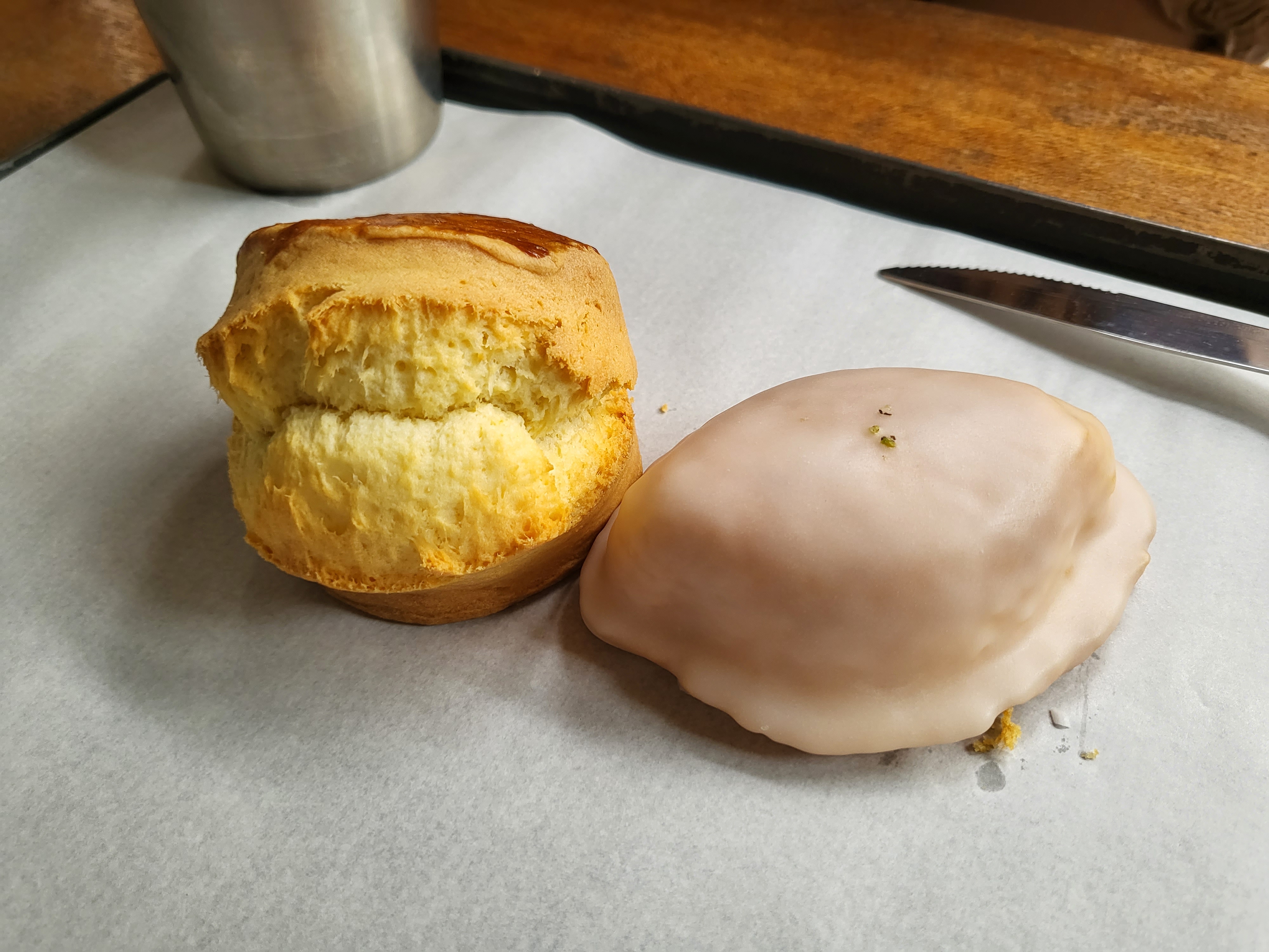플레인 스콘은 생각보다 짭짤함이 없고 담백하기만 해서 약간 심심한 맛이었는데요, 그래서 중간에 딸기🍓 쨈을 사다가 먹었습니다. 😀