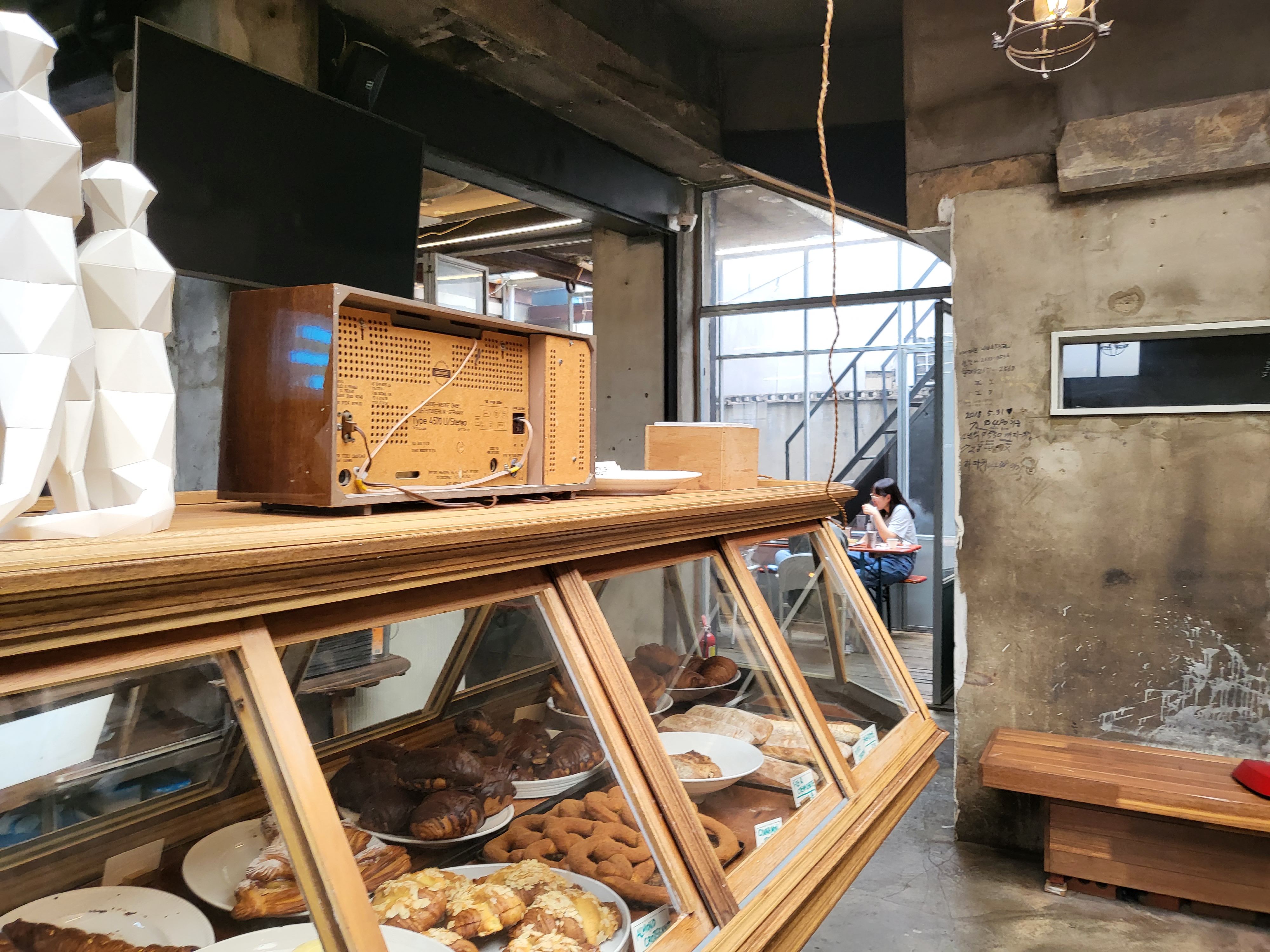 곳곳에 감각적인 소품들도 눈에 띄고, 빵이 있는 진열장도 레트로한 느낌이 물씬 들더군요~