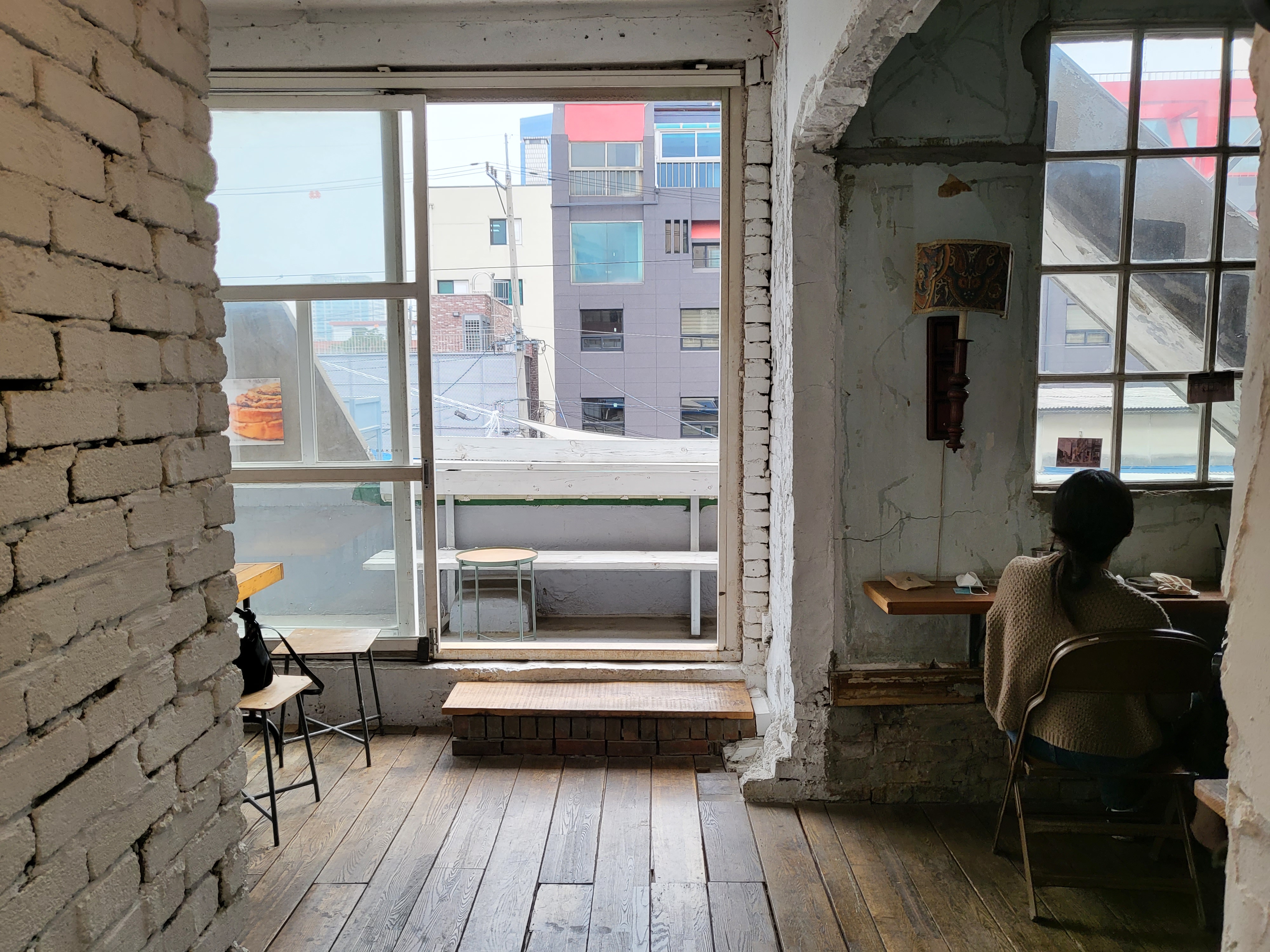 곳곳에 포토스팟이 많은 듯한 문래역 근처 러스트베이커리의 2층 구경을 마치고,