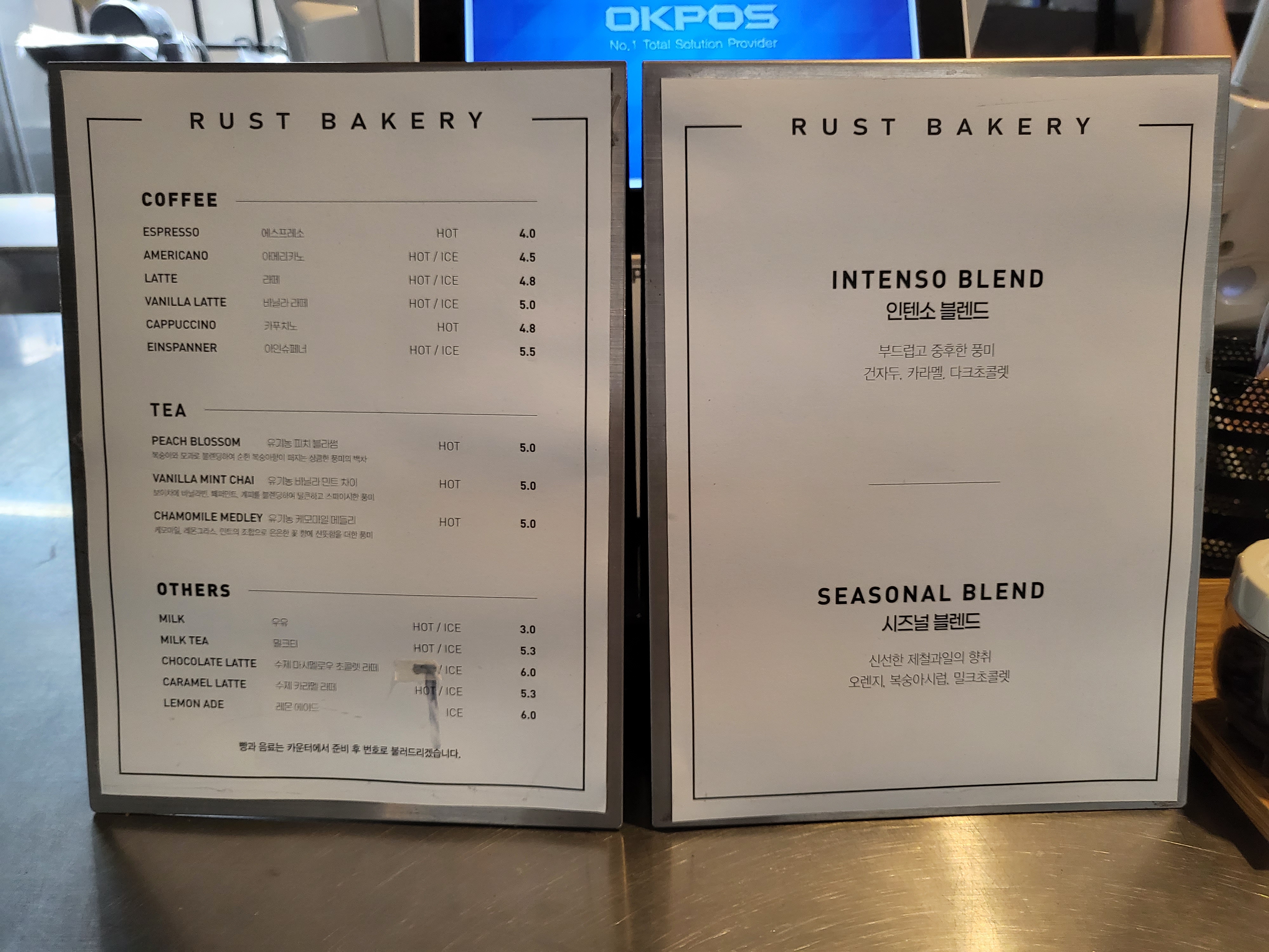 문래 카페 러스트 베이커리에는 원두를 취향에 따라 인텐소 블렌드, 시즈널 블렌드 중에 고를 수 있어서 더욱 좋았습니다!