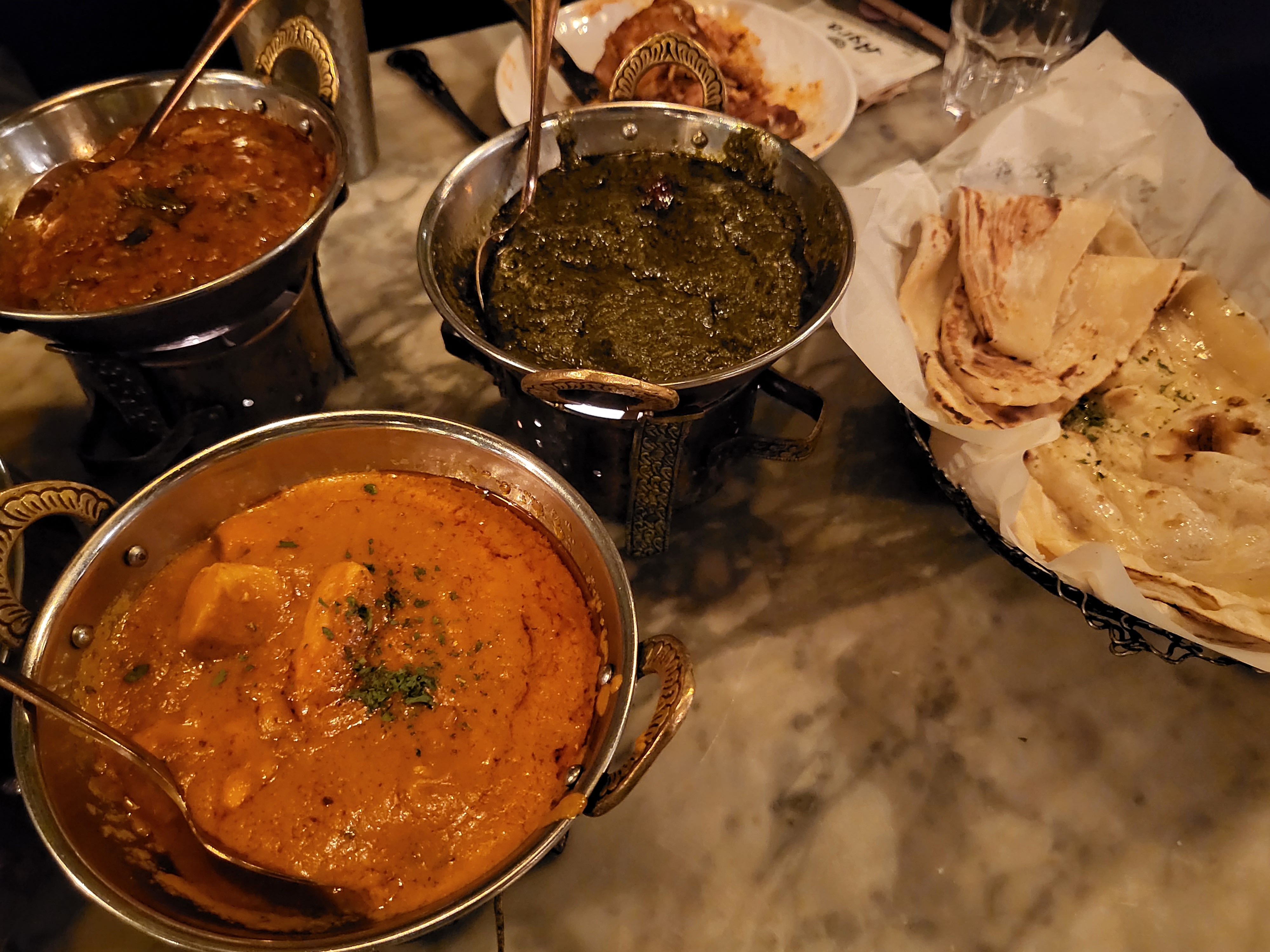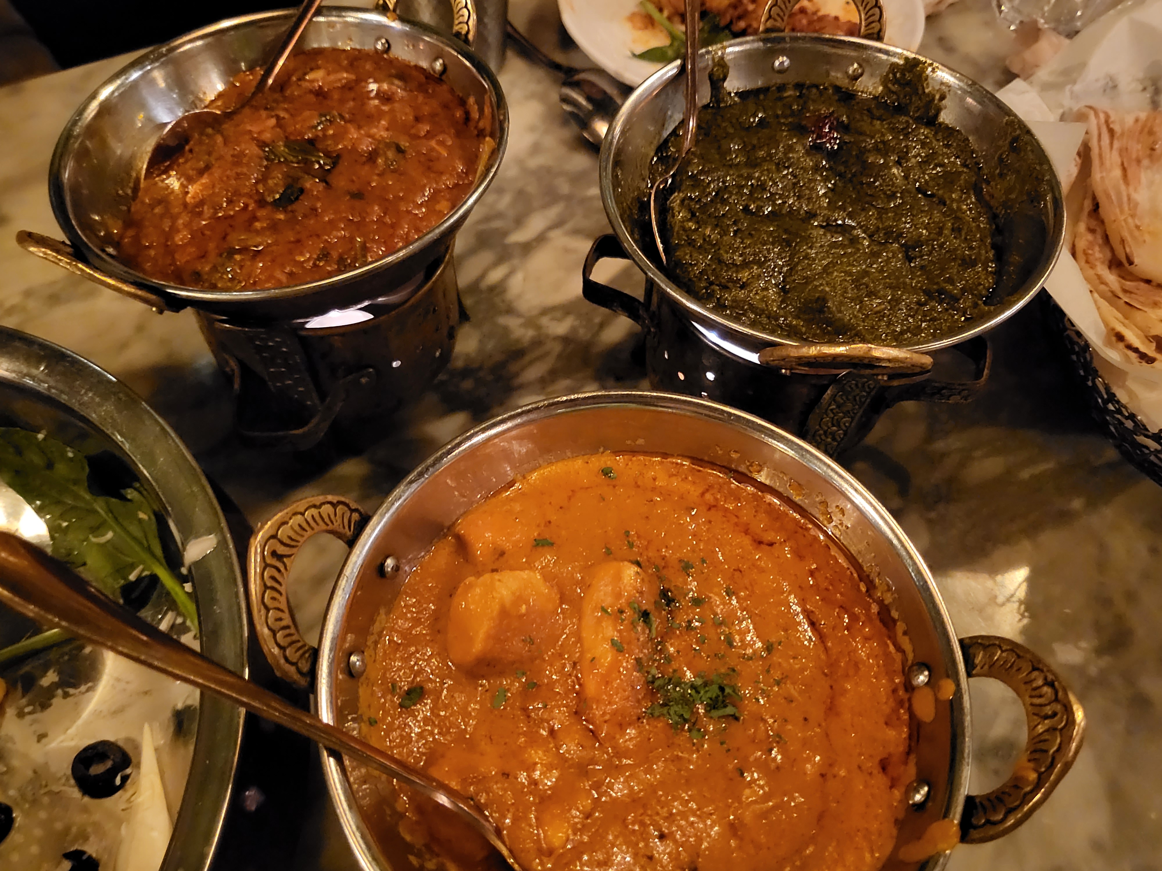 저희가 주문한 버터 치킨 마크니, 로얄 프로운 커리, 알루 빨락 커리가 나왔습니다.