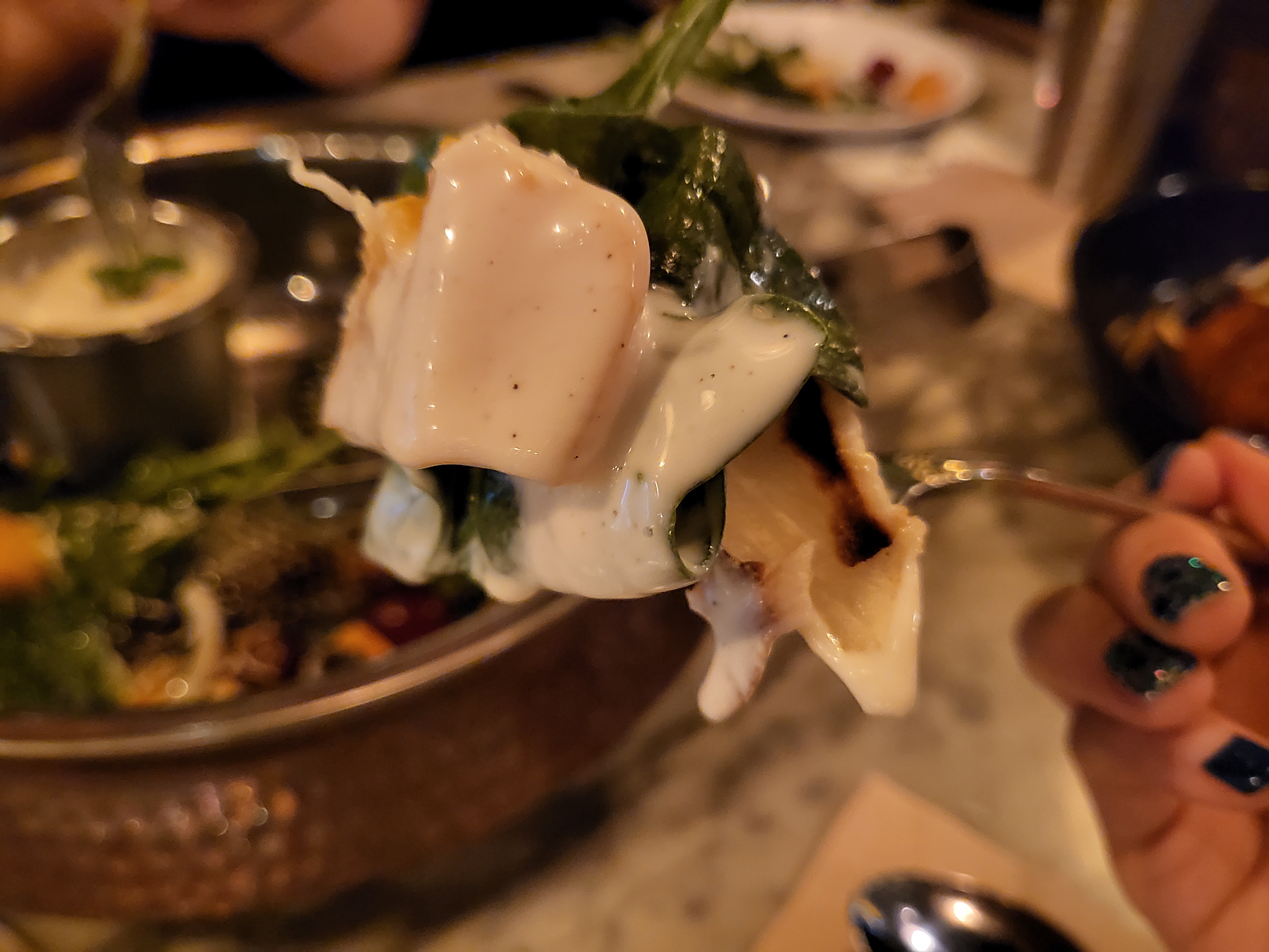 안에는 구워진 난도 있었고 드레싱은 아마 라씨로 만든 것 같았는데 상큼하고 부드러운 맛이 좋았습니다.
