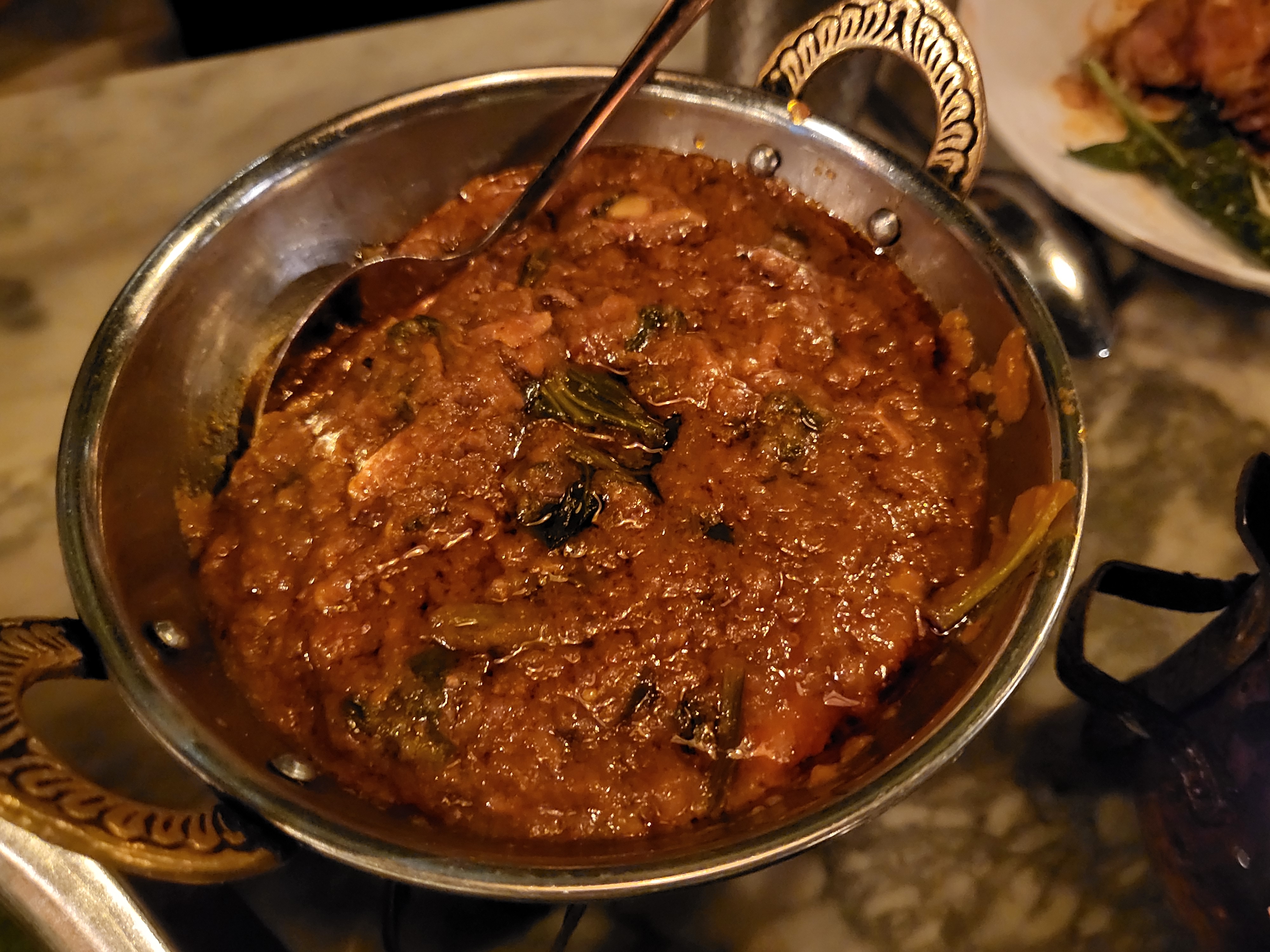 아그라의 시금치 커리는 시금치의 밀도가 높았습니다.