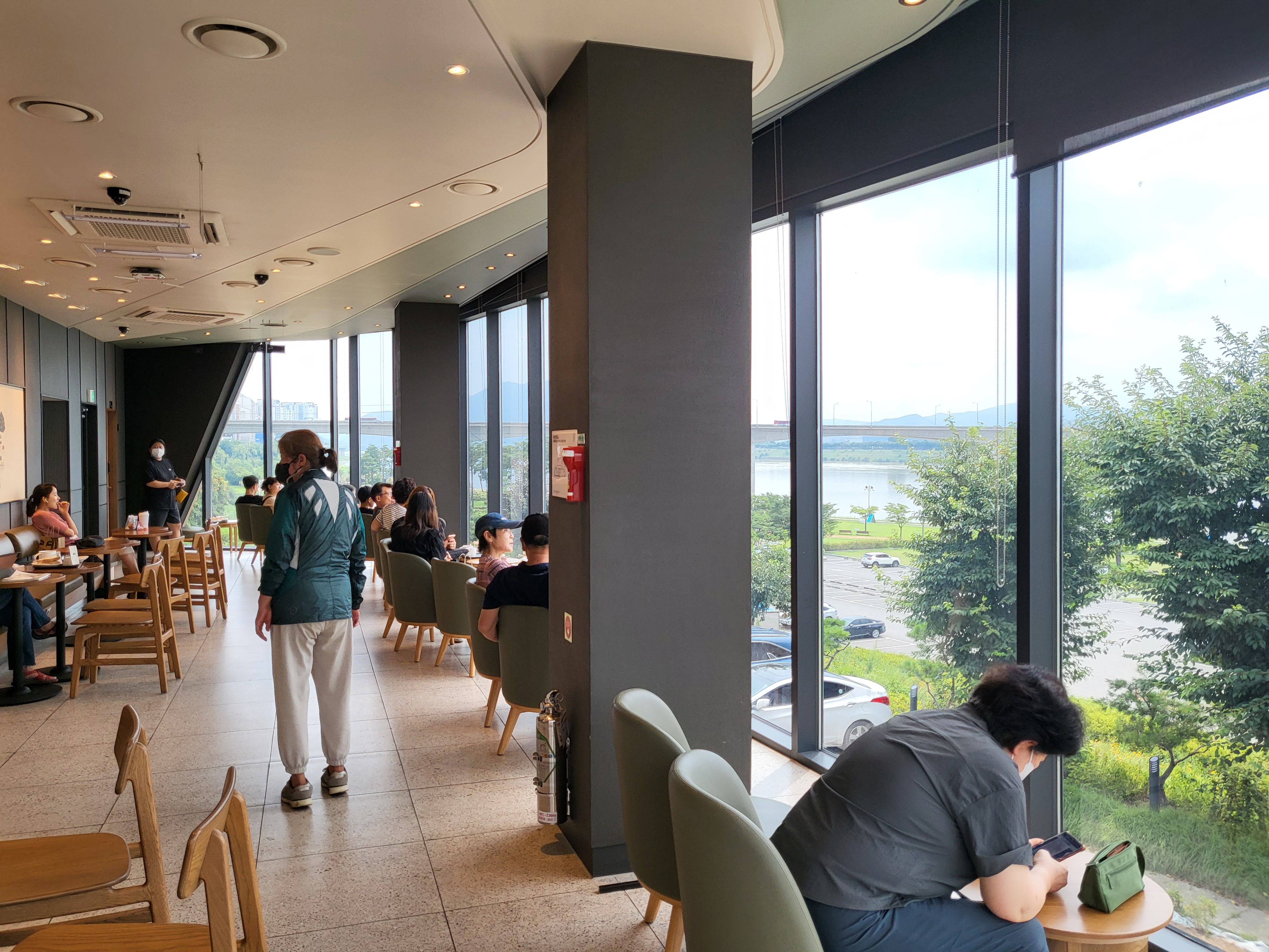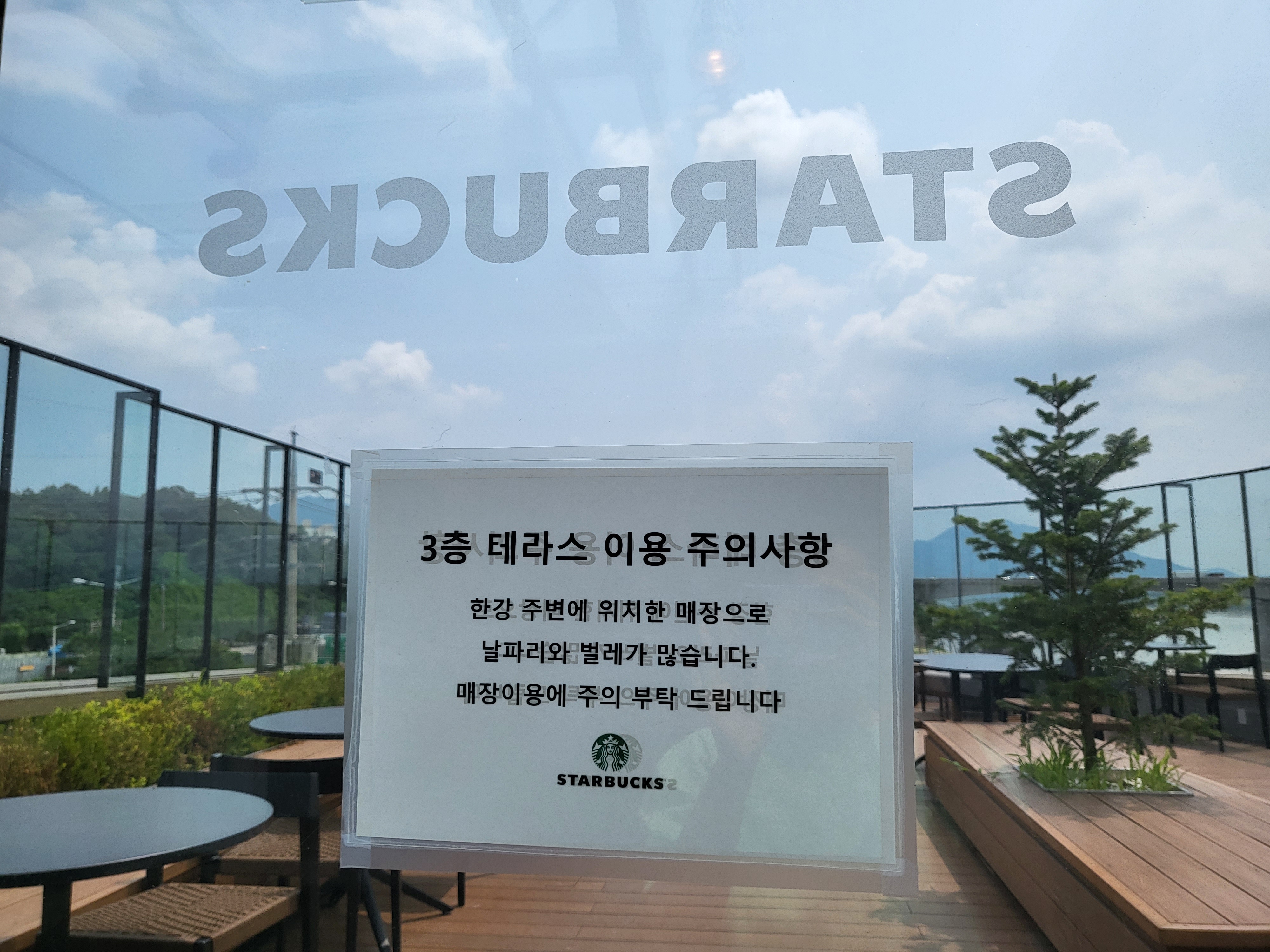 리버뷰 스타벅스 남양주삼패점 2층은 한강 보이는 쪽이 전부 유리로 되어 있었습니다.