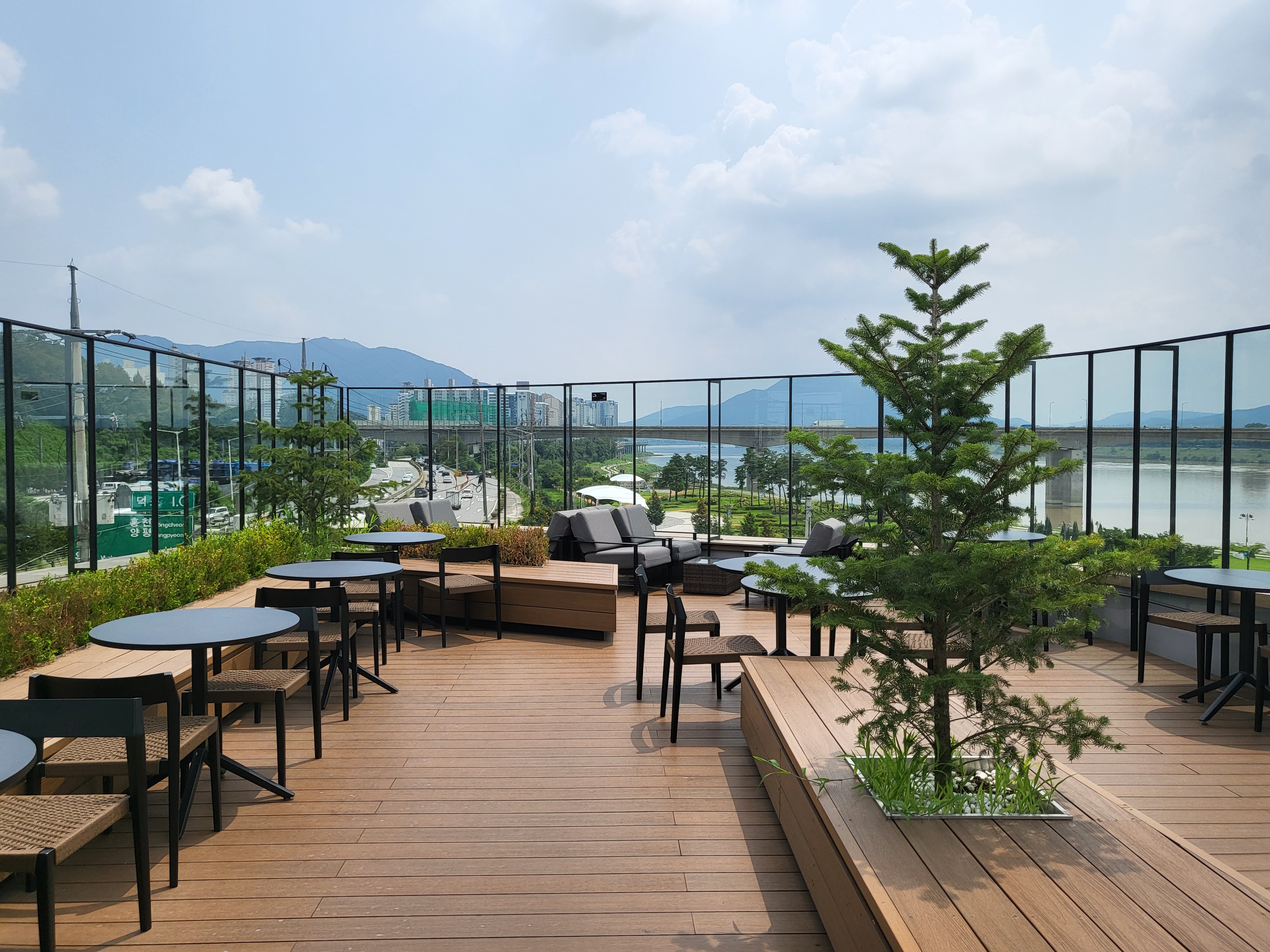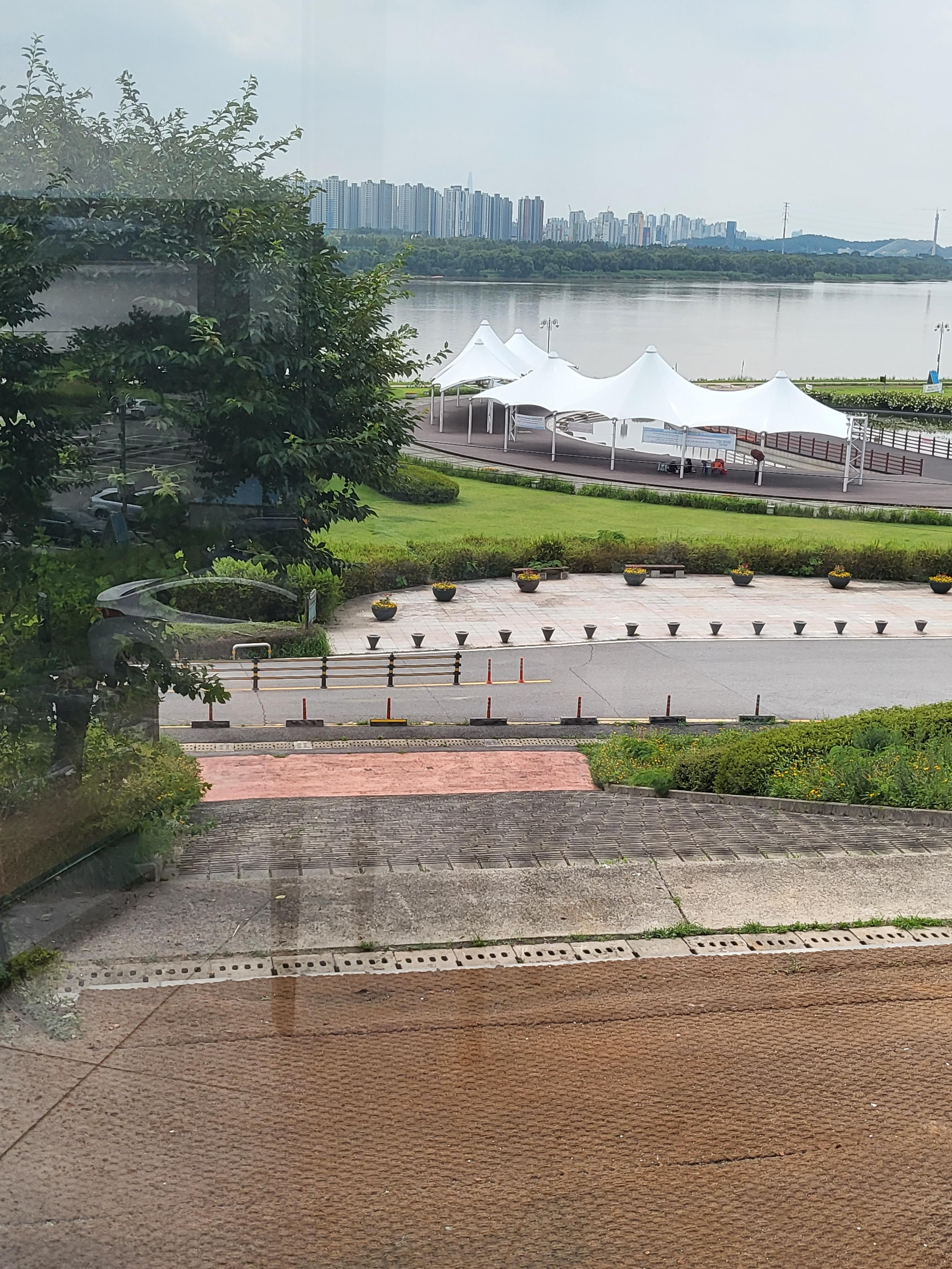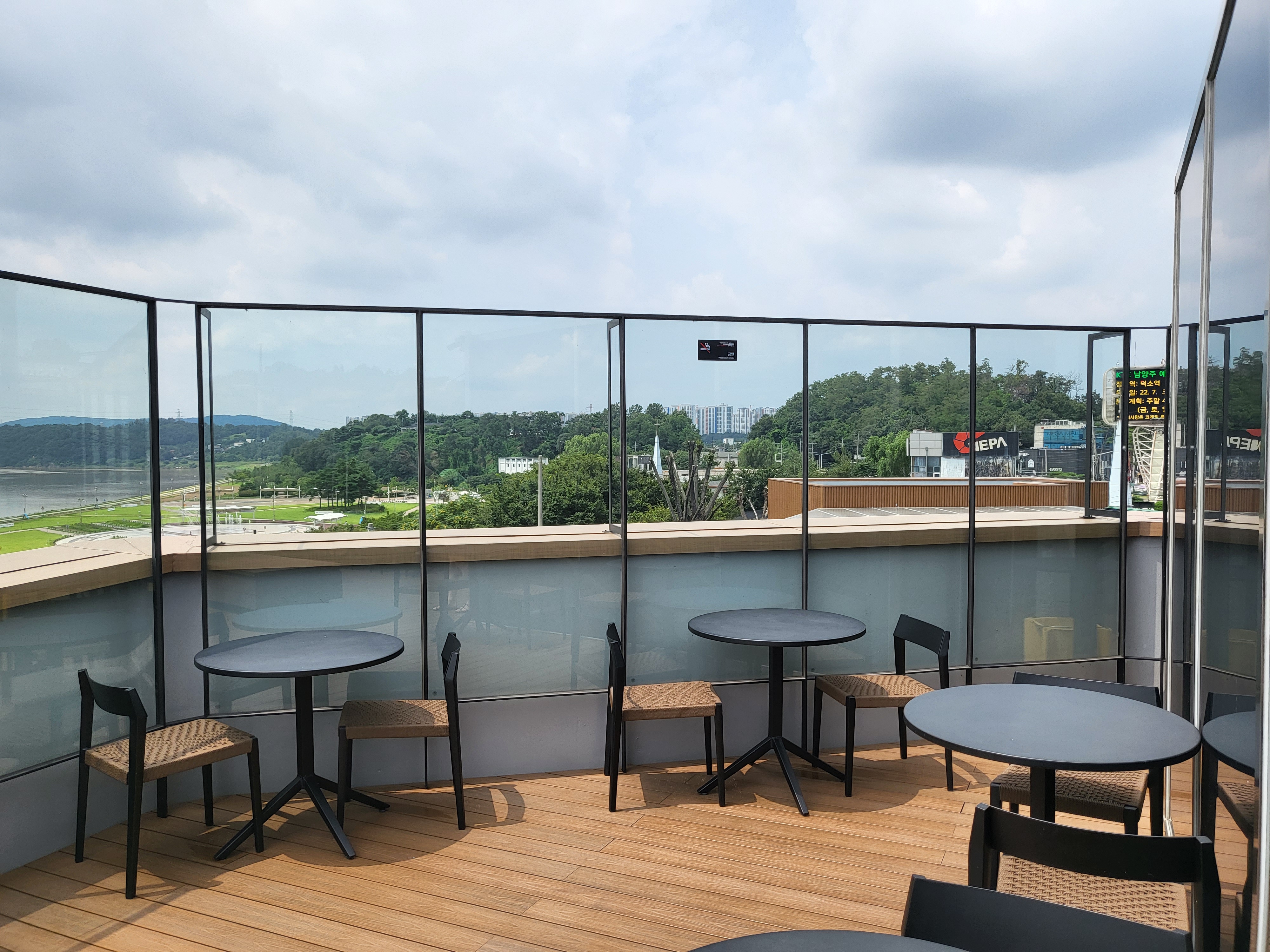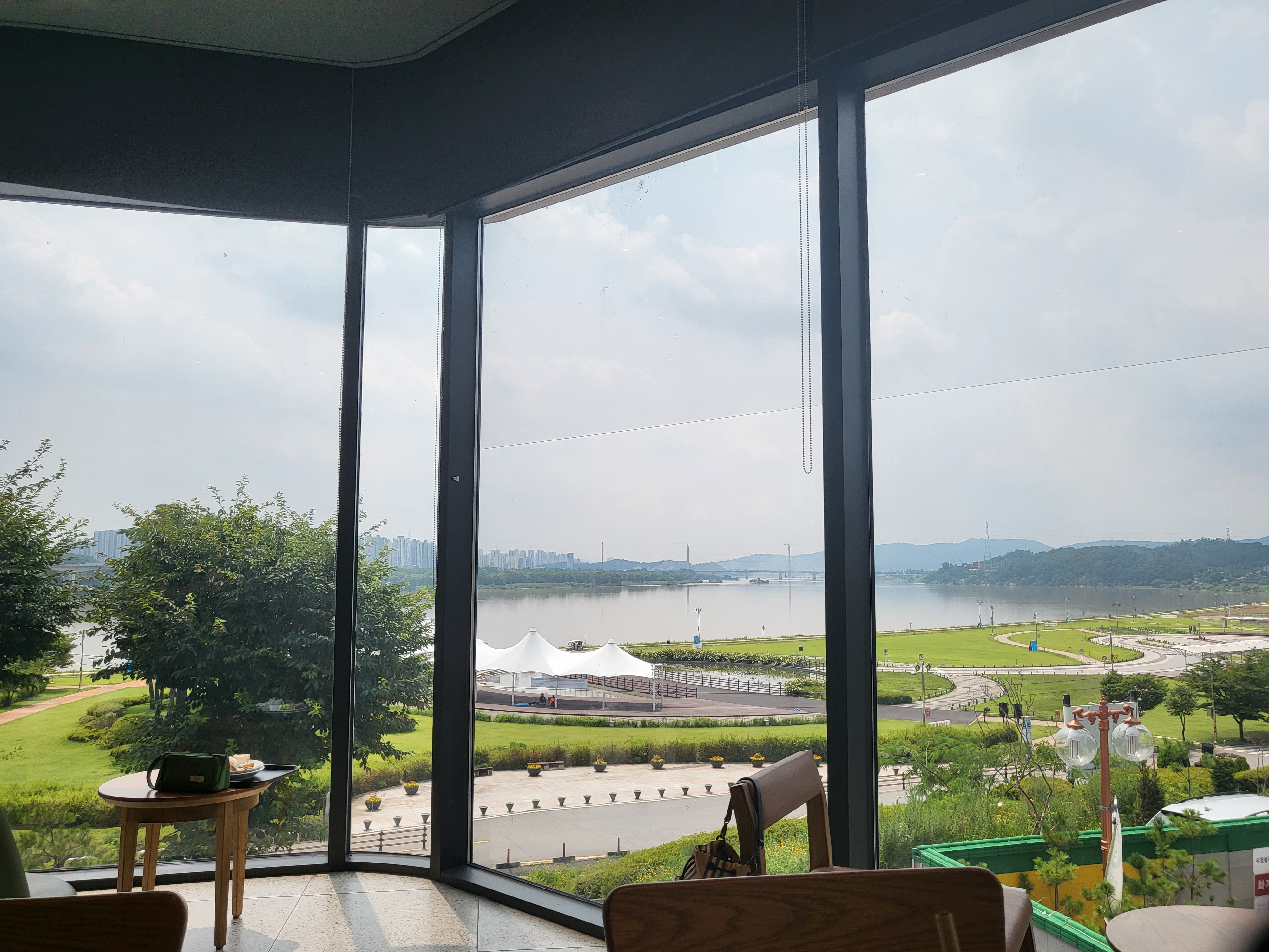 한강이 잘 보여서 더욱 좋았던 3층 테라스 자리이지만, 요즘처럼 비가 오거나 너무 덥거나 추운 날엔 앉을 수가 없어서 아쉬웠습니다.