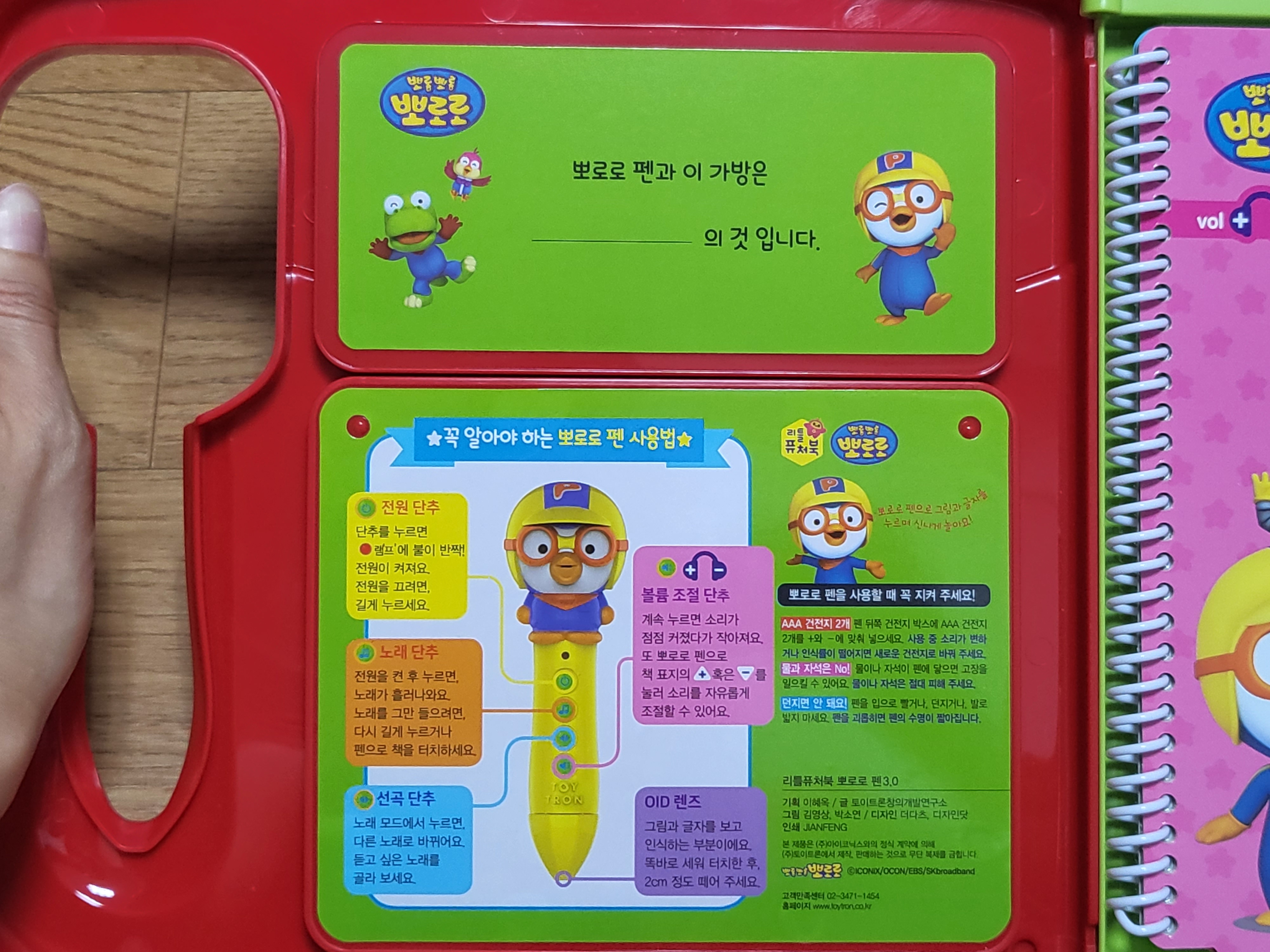 두돌아기 뽀로로책 안쪽에는 이름을 적을 수 있는 칸과 뽀로로펜 사용법이 상세하게 적혀있네요!