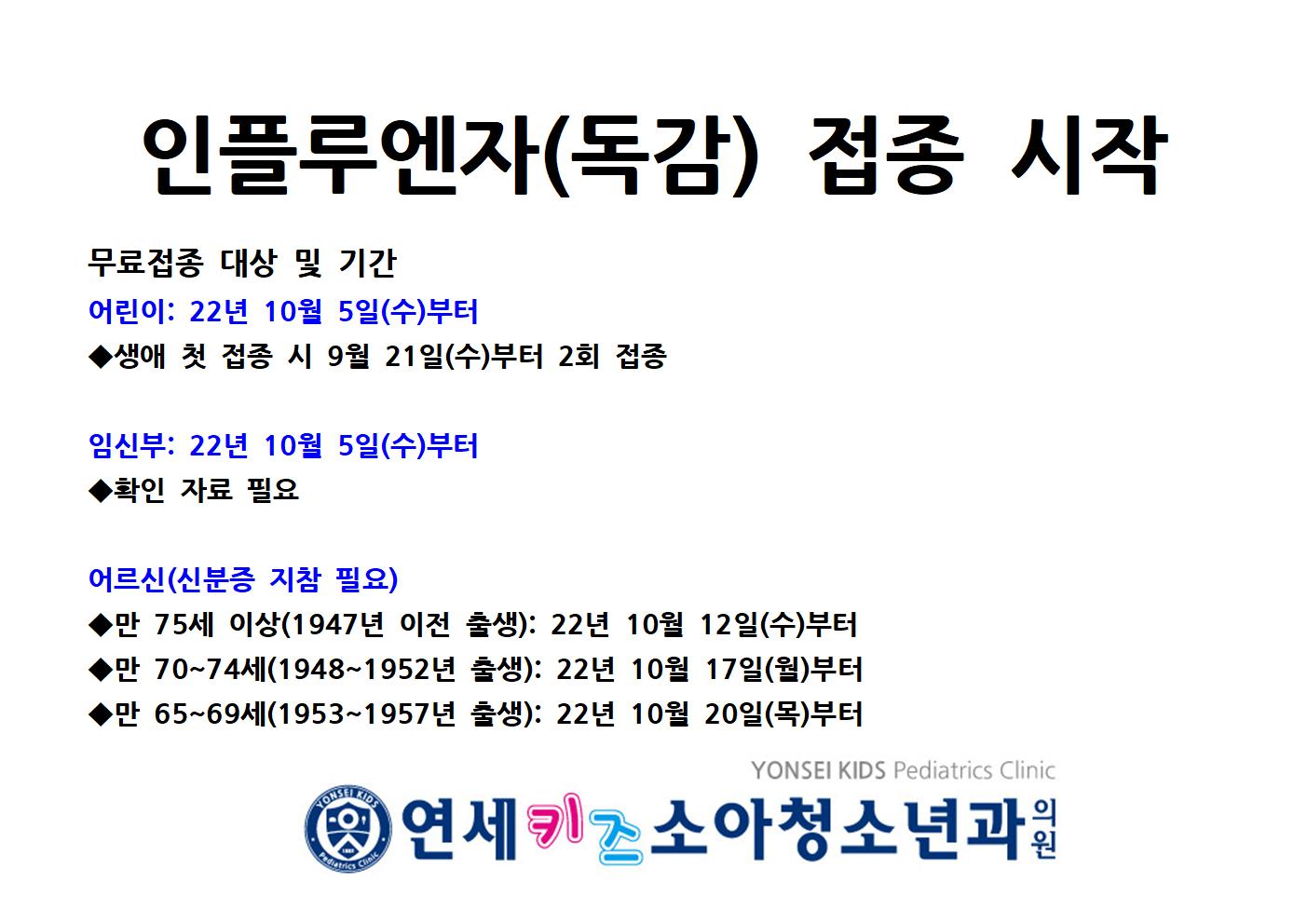 2022년 인플루엔자(독감) 접종이 시작되었습니다.