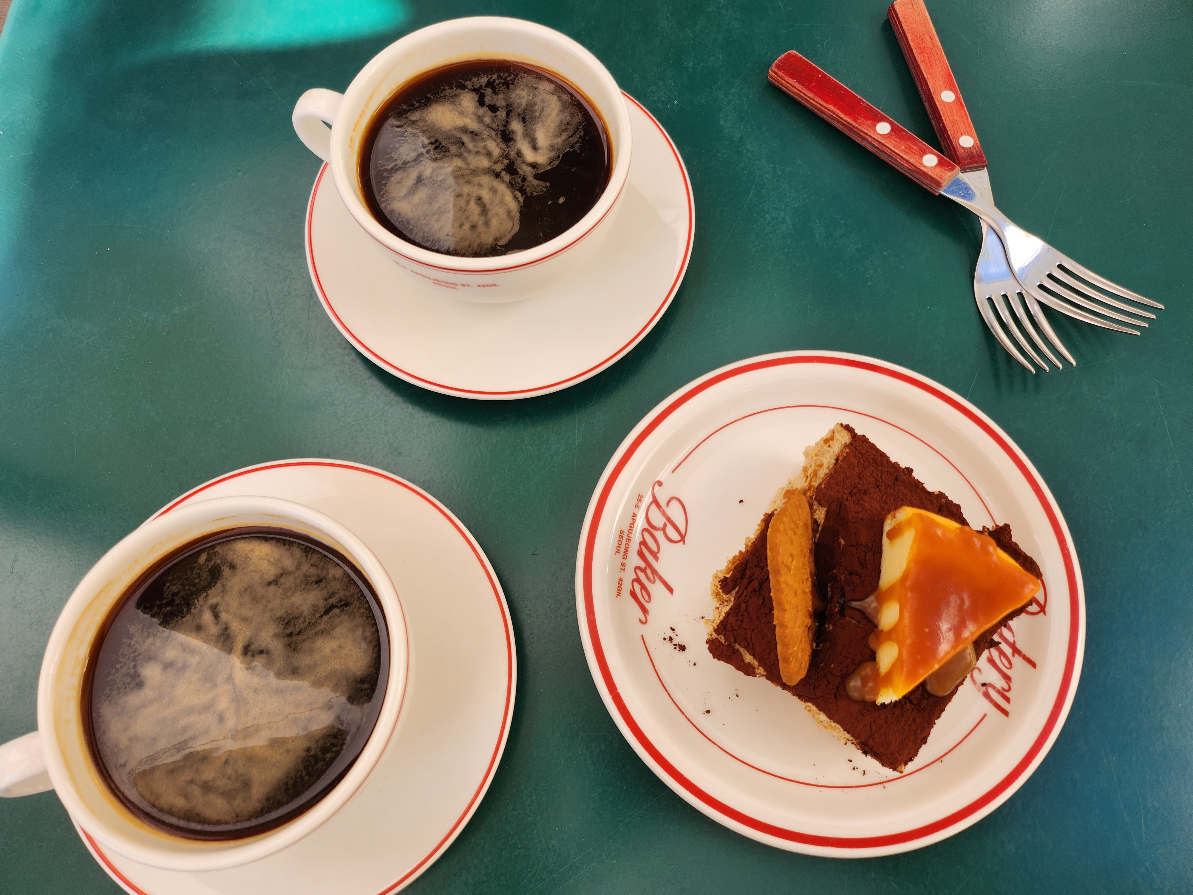 아래는 티라미슈이고 위에는 치즈케이트와 로투스 과자가 있어서 마치 3가지의 디저트를 먹는 느낌이었습니다.