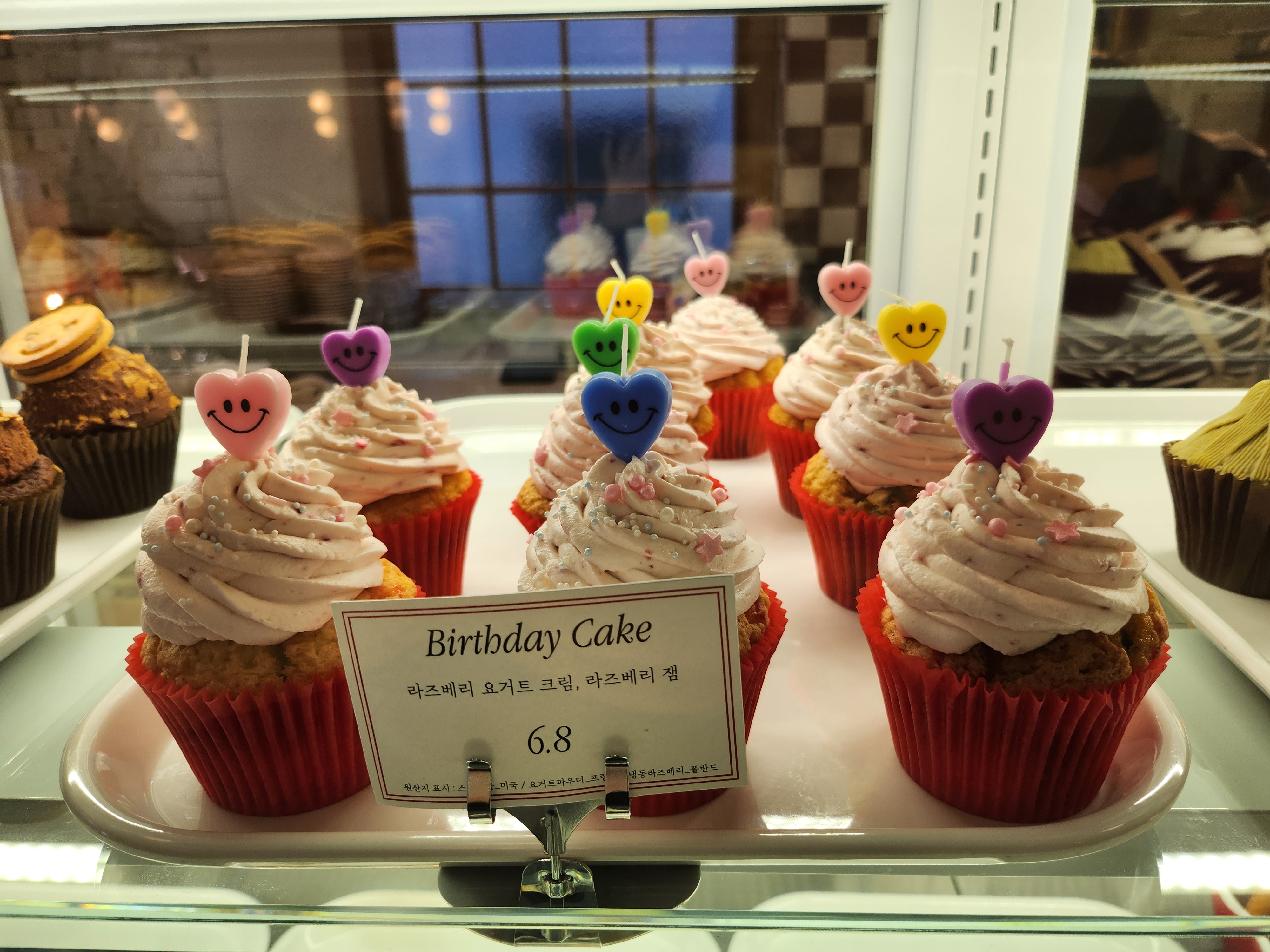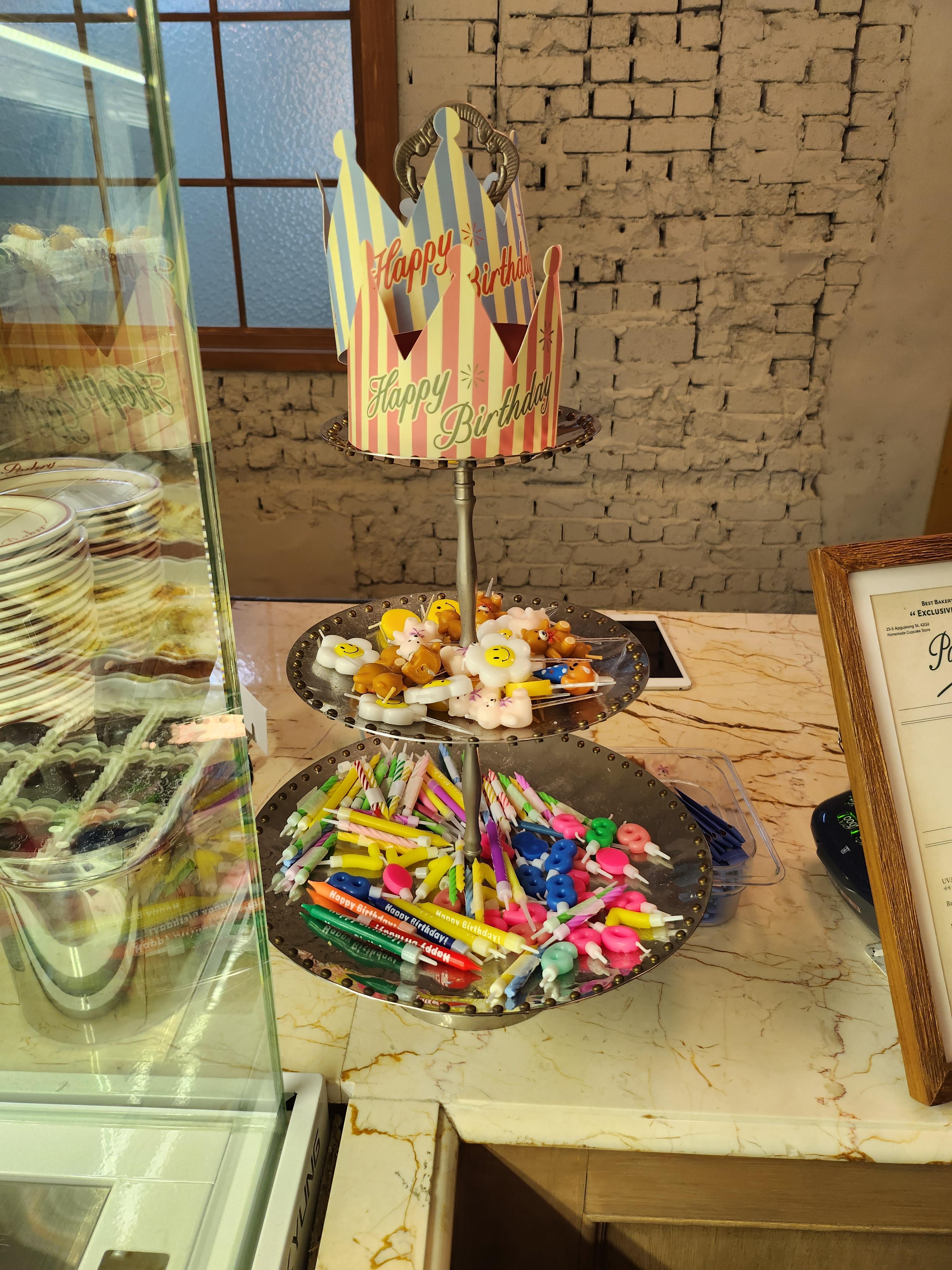 너무 귀여운 초가 있는 컵케이크나 아기자기하게 꾸며진 케익들이 눈에 띄었습니다~