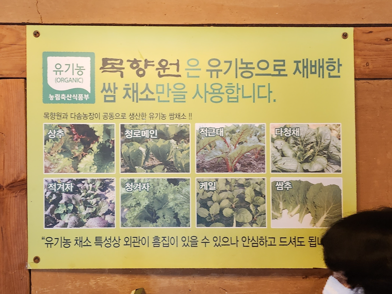 들어가자마자 눈에 띄는 유기농 쌈 채소를 사용한다는 내용입니다~