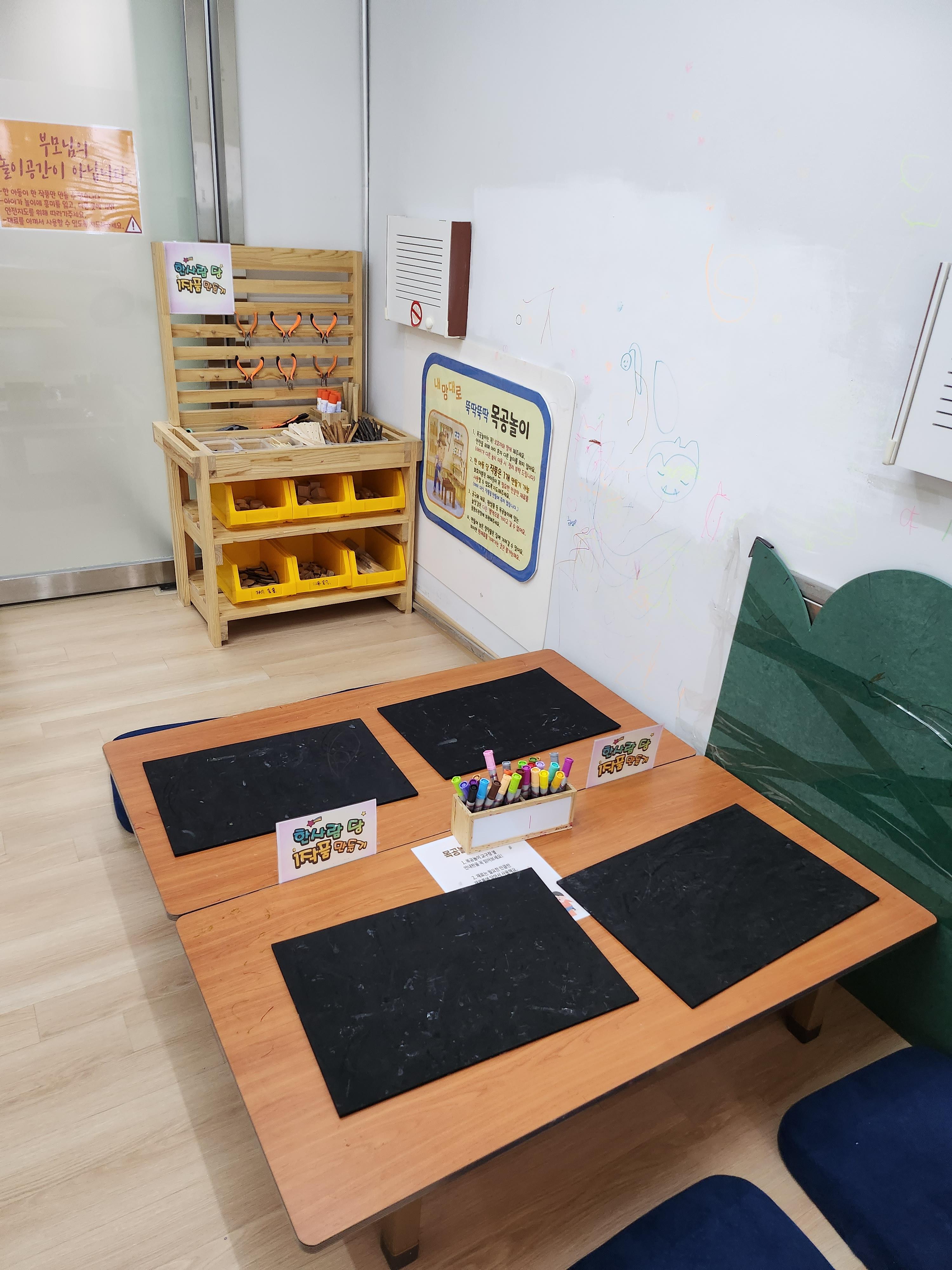 중구 공공형 실내놀이터 하티붕붕 앞에는 앉아서 휴식할 수 있는 공간도 마련되어 있네요~