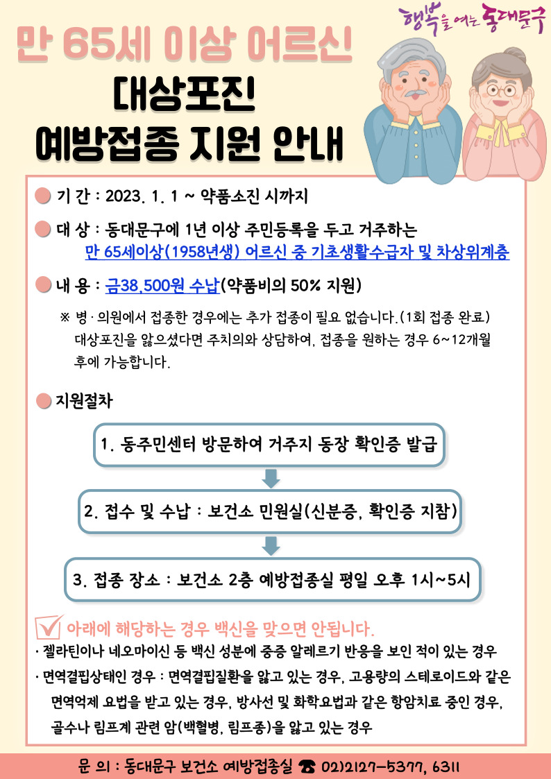 동대문구 보건소 예방접종실 02-2127-5377. 6311