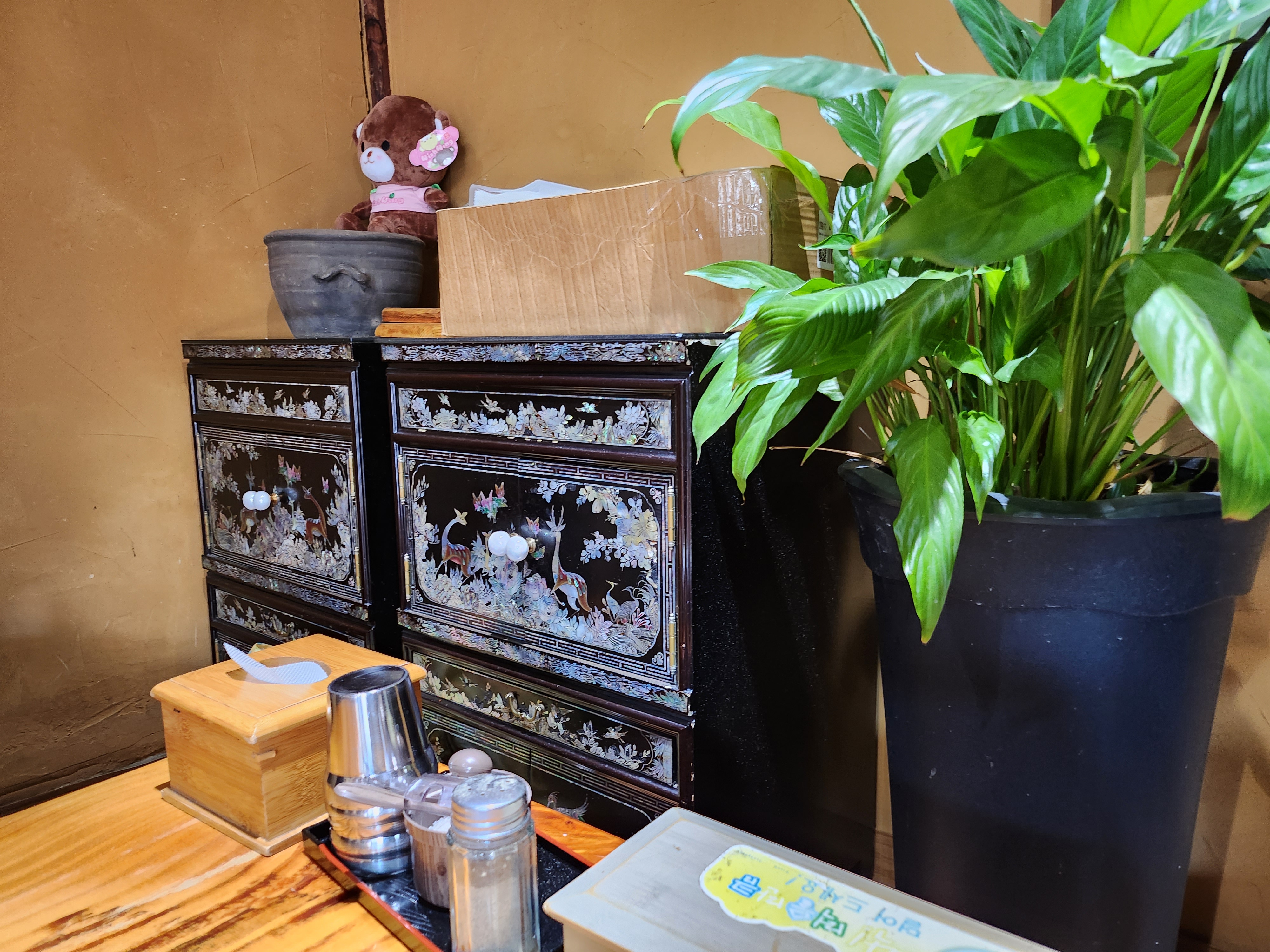 저희가 앉은 자리 옆쪽으로는 전통적인 자개장이 보입니다.