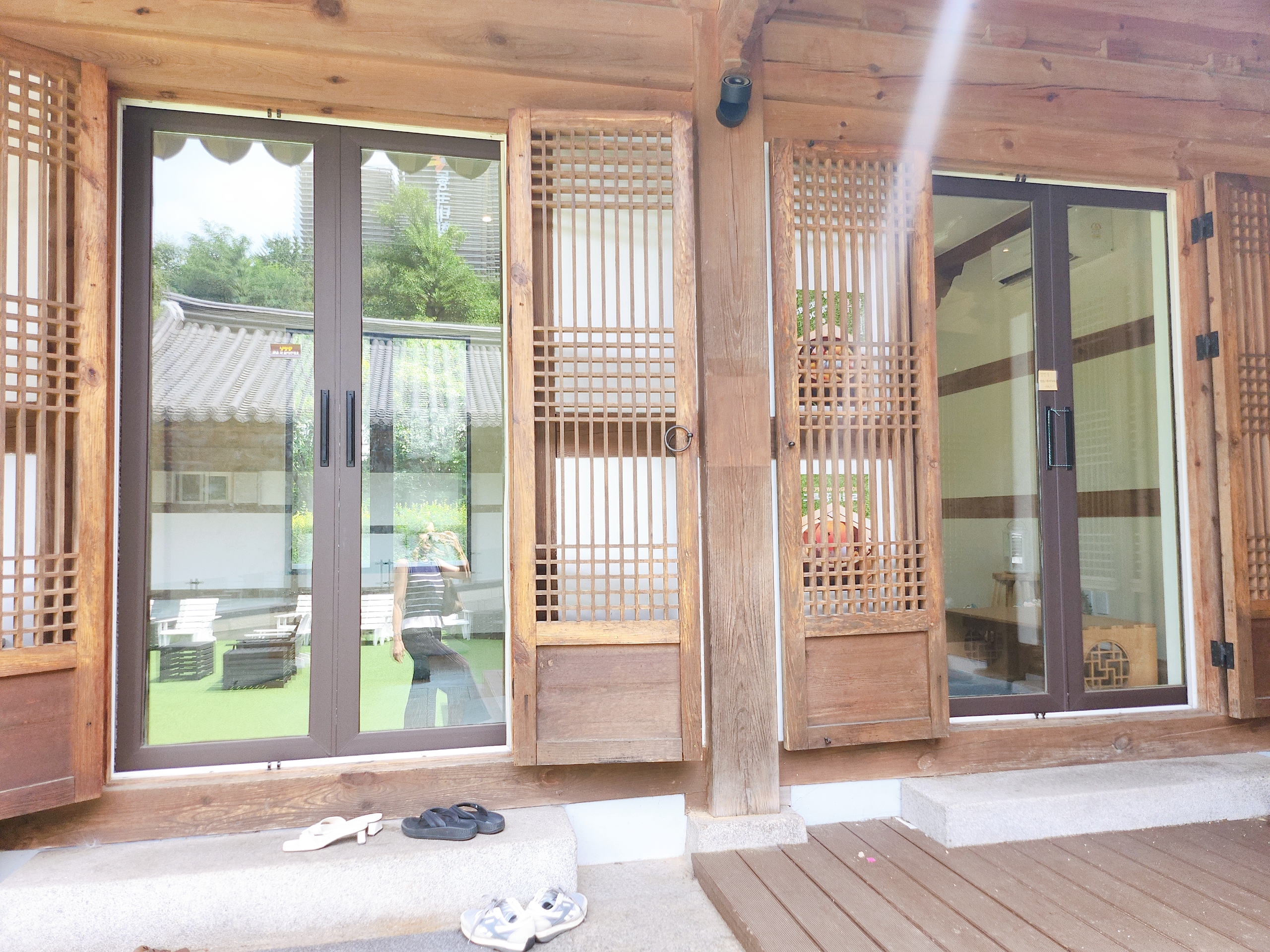 녹음이 푸르른 공원 내에 있는 한옥카페라서 고즈넉한 분위기가 느껴집니다.
