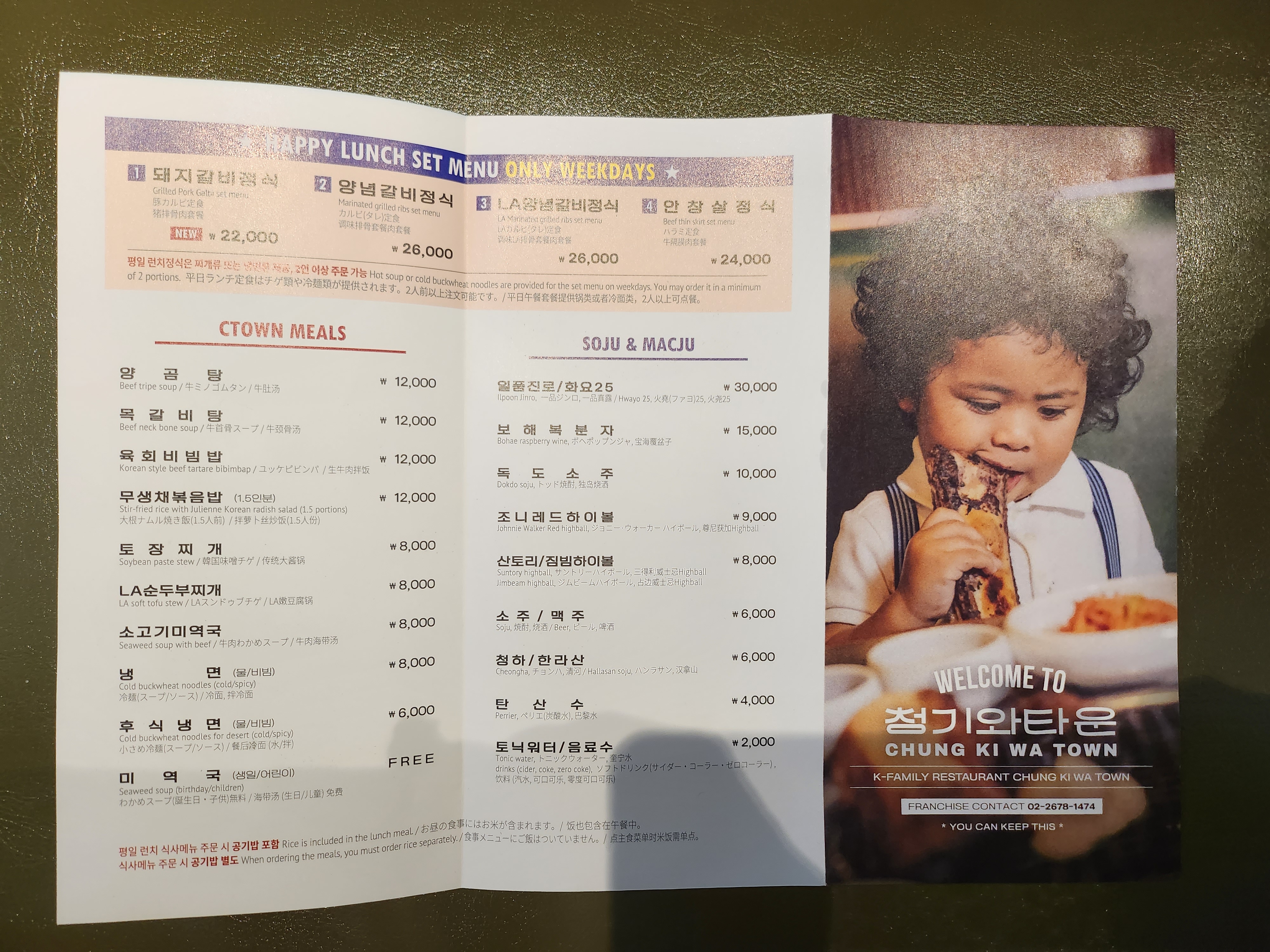 메뉴판도 특색있는 수원왕갈비 맛집 청기와타운입니다~
