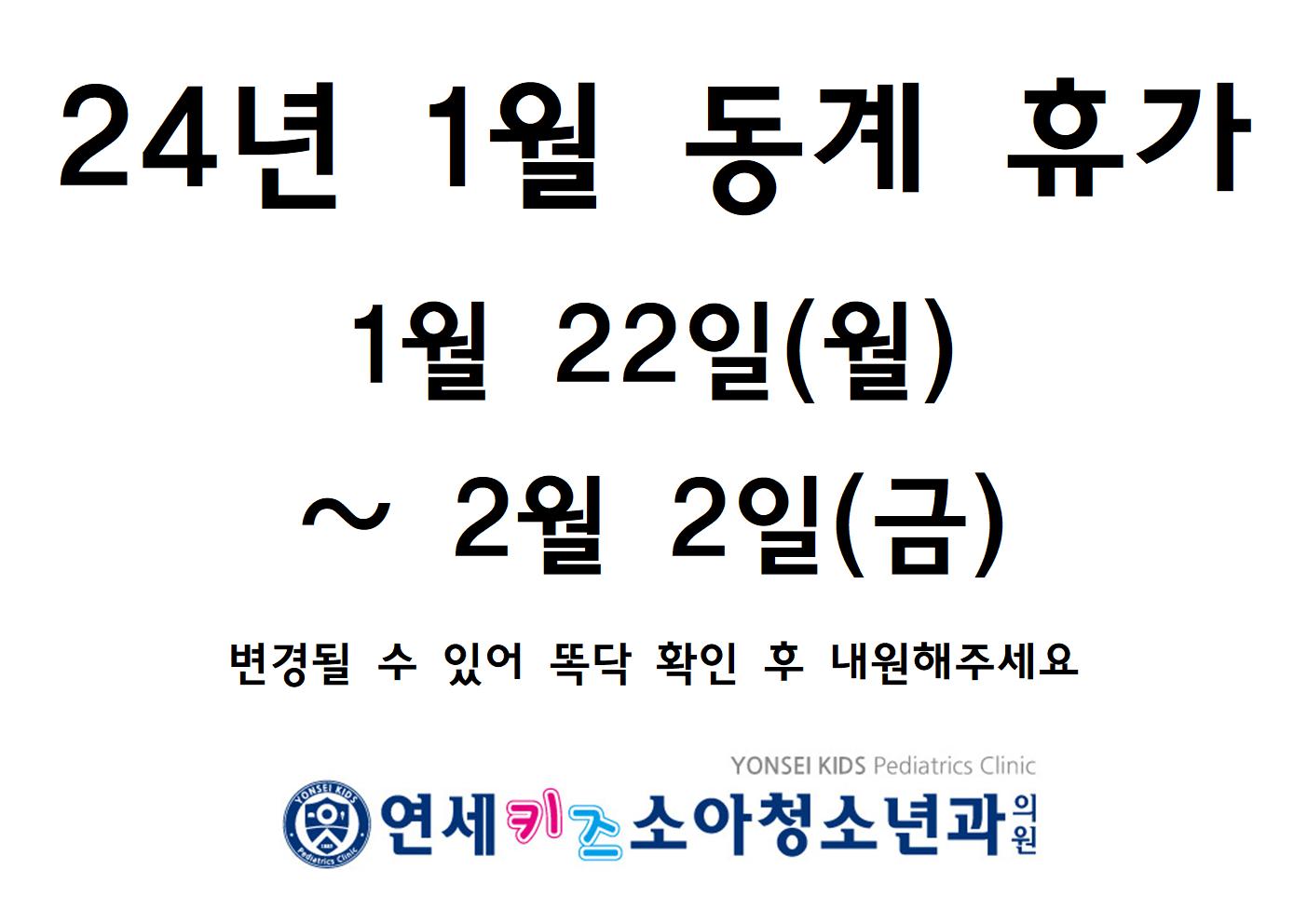 24년 1월 22일(월요일) ~ 2월 2일(금요일)은 휴진 합니다.