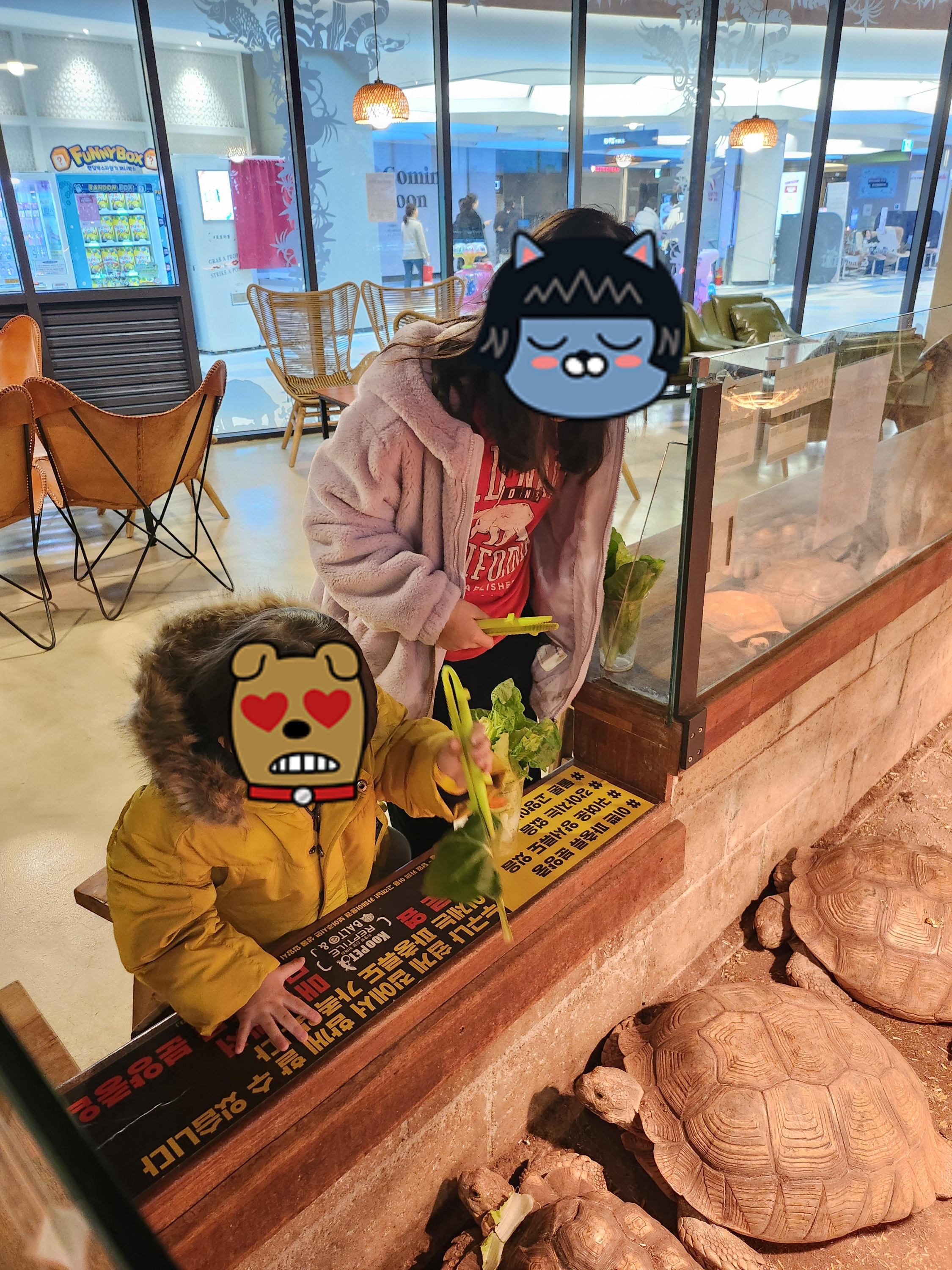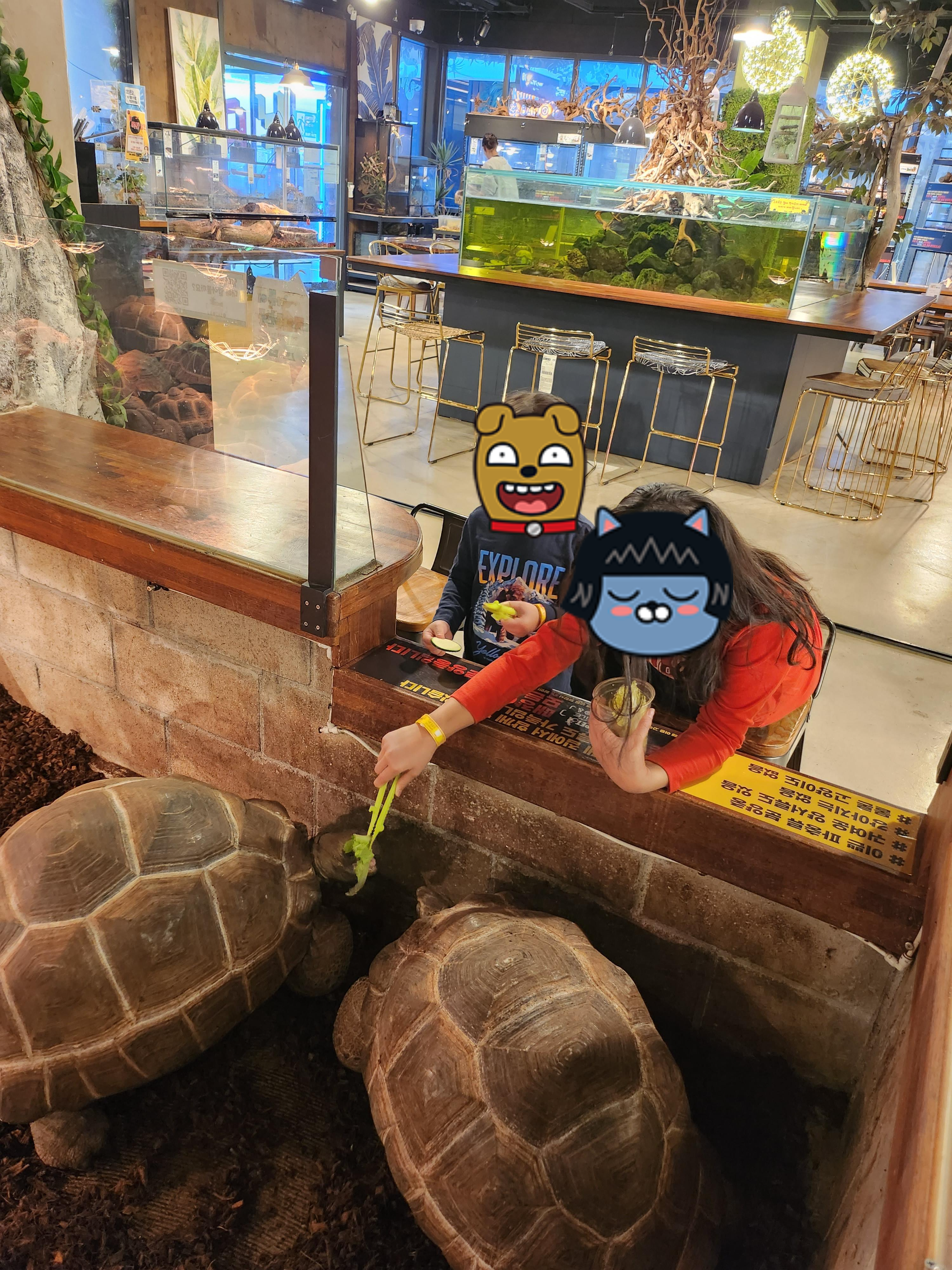 가성비도 좋고, 부모님들은 커피 한잔의 여유도 즐기고 아이들은 거북이 구경도 하며